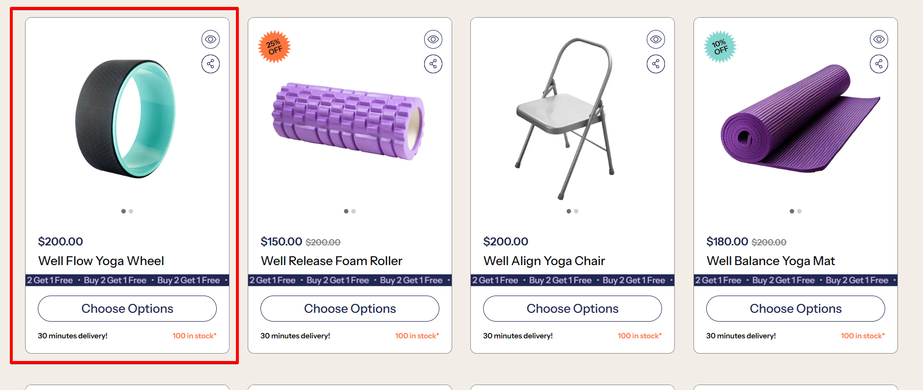 | Color scheme | Applying a chosen color scheme to product cards from a suggested list of color schemes automatically updates all associated colors for a cohesive and professional look across your website. |