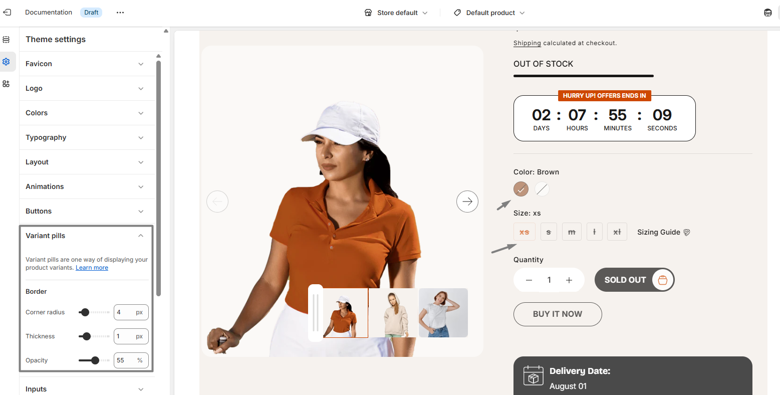 “Variant pills” are small, clickable UI elements commonly used in e-commerce platforms to display product options, such as color, size, or style. They allow users to quickly select and view different variations of a product while maintaining a clean and user-friendly interface.