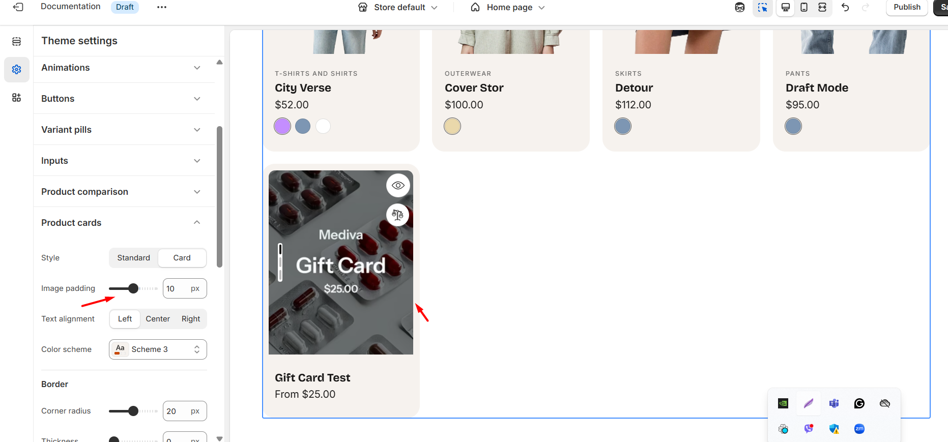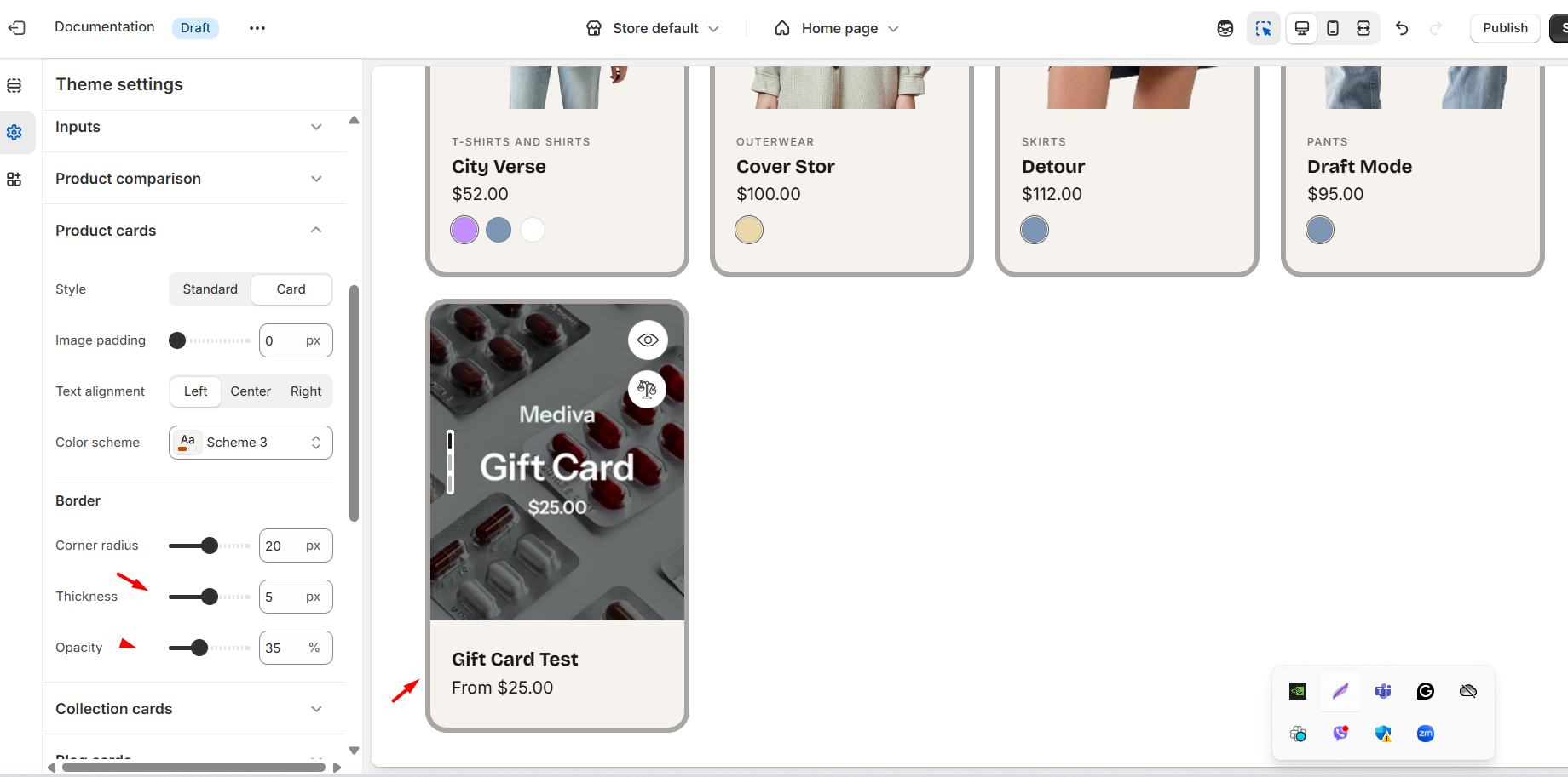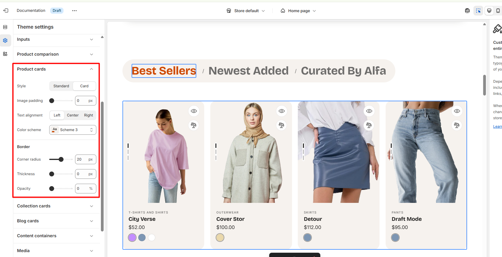 These settings apply to product cards displayed in sections, as well as on collection and search pages.