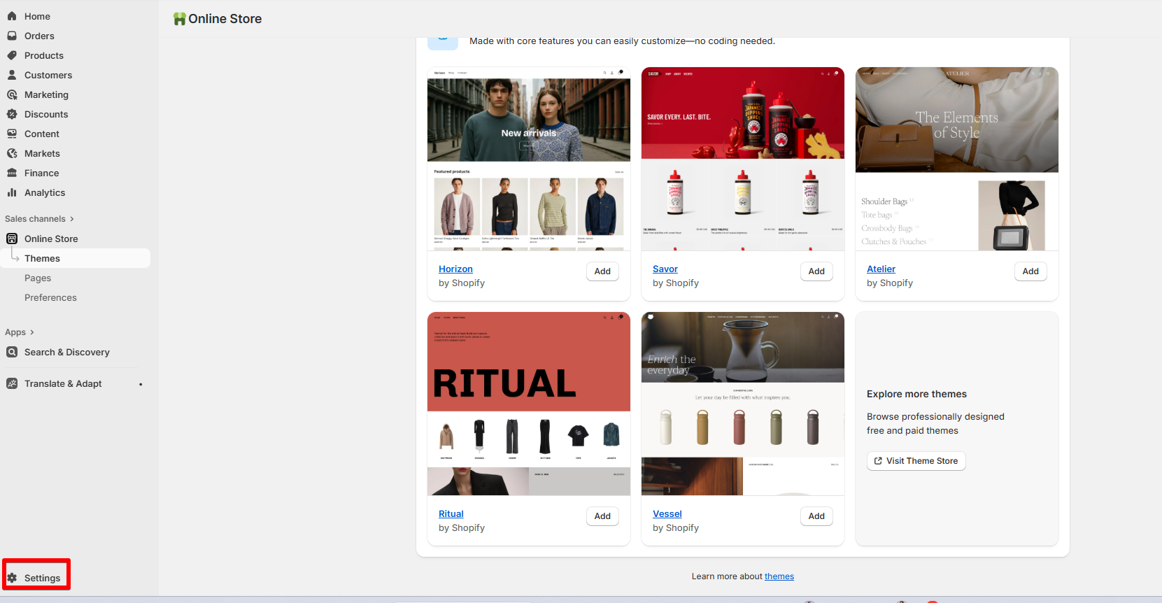 Apps: Explore the “Apps” section to discover additional tools and features for your store. You can browse and install apps from the Shopify App Store to enhance your store's functionality and streamline your operations.