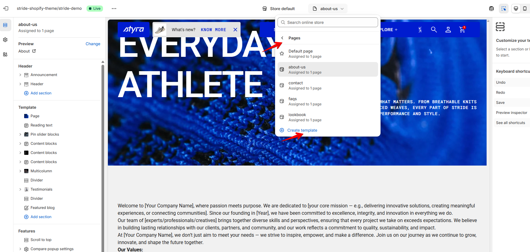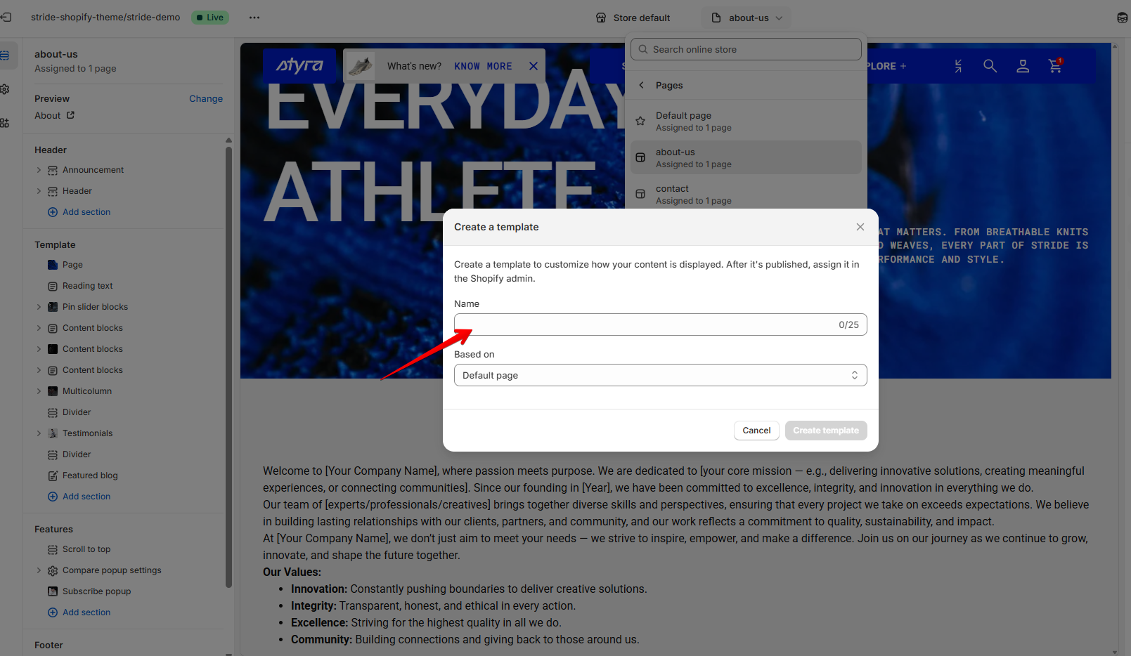 Enter a name for the new template (e.g., “About Us” or “Custom Page”)