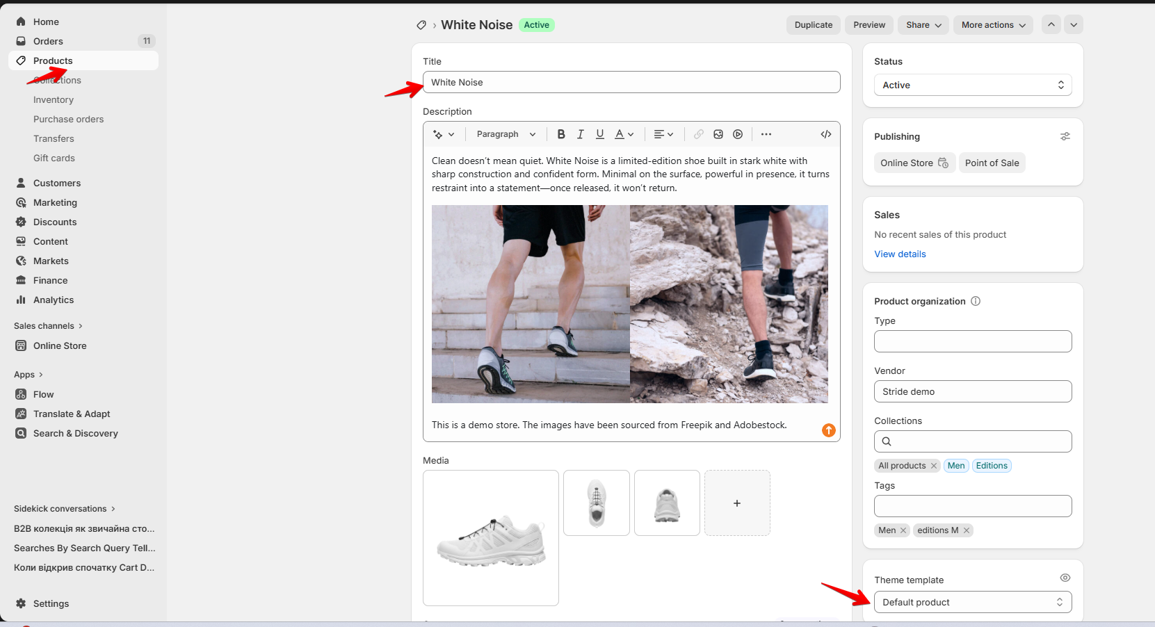 3. In the Theme template section, click the drop-down menu and then select the template that you want to apply to your product.