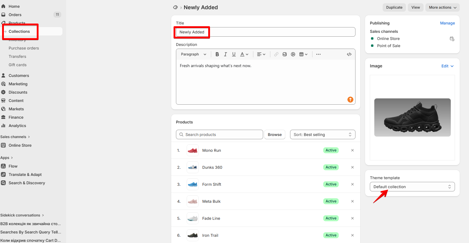 1. Go to “Products” > “Collections” in your Shopify admin.