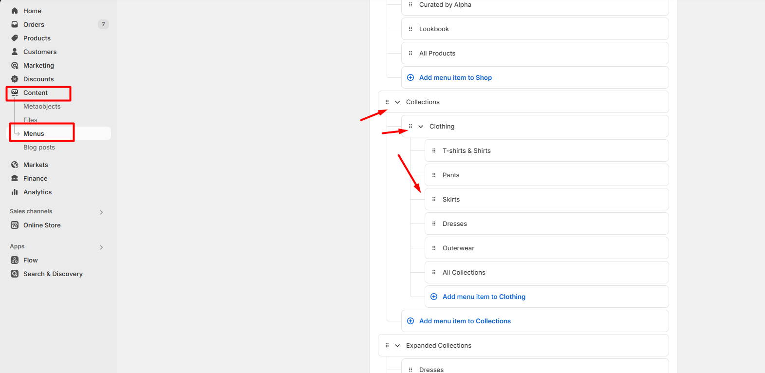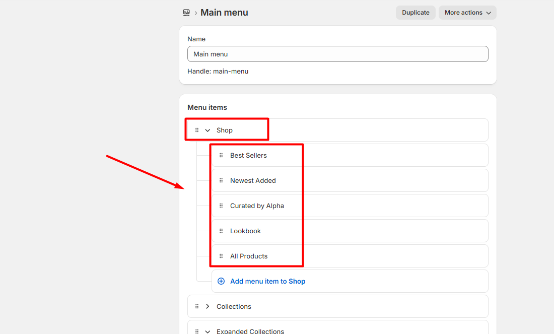 - Navigate to Online Store > Navigation in your Shopify admin.