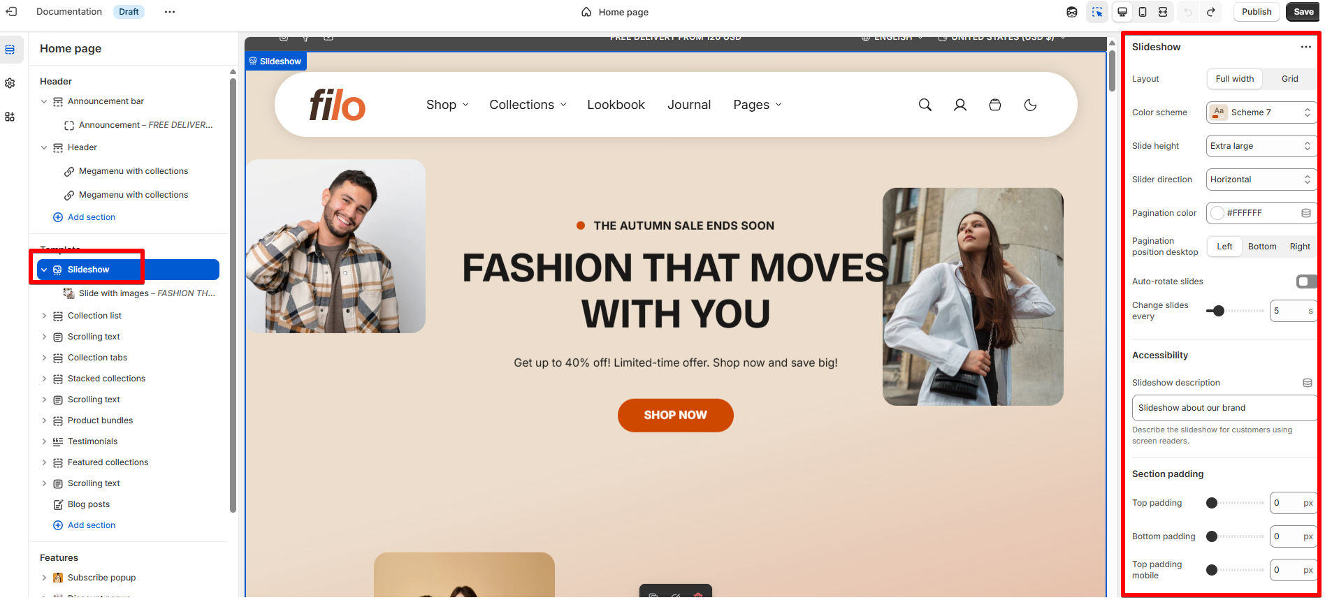How to configure the Slideshow section