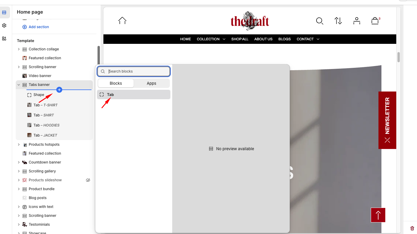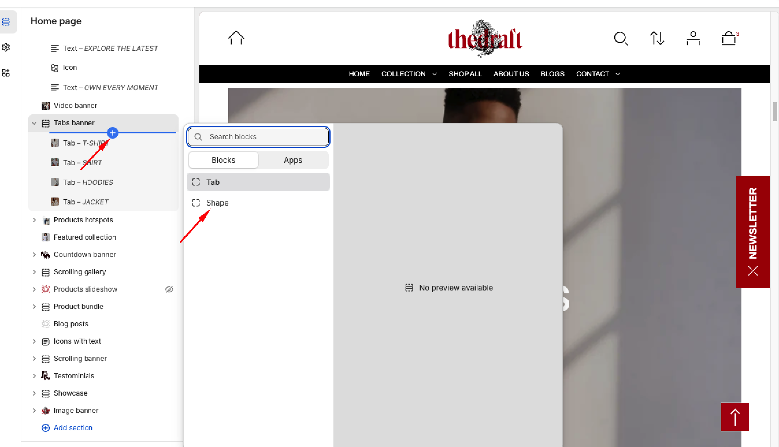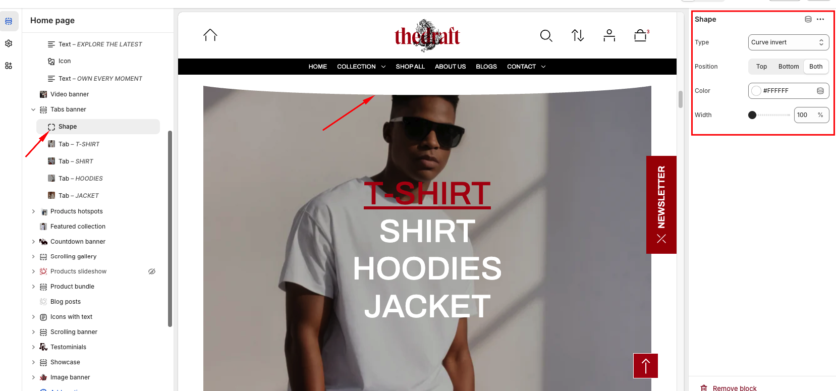To give the section a unique shape, add a Shape block — this block is added only once, and its settings apply to the whole section.