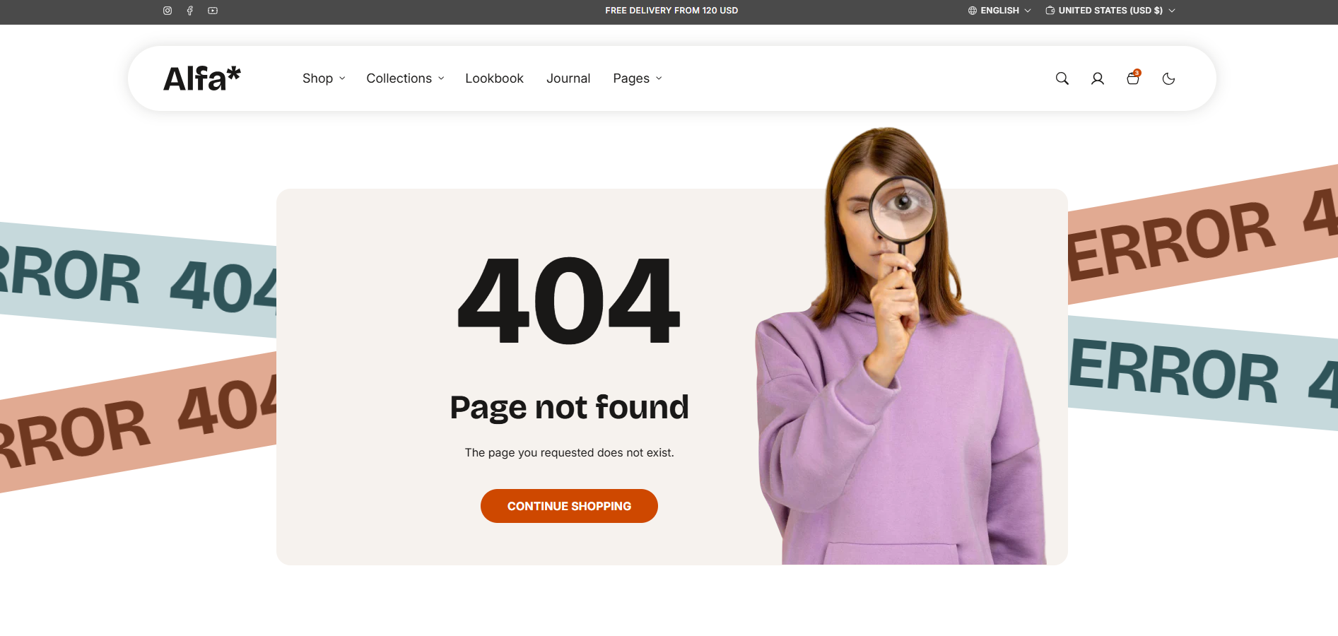 The 404 template is a crucial component of your online store that helps manage user experience when visitors encounter broken or missing pages. It’s designed to:
