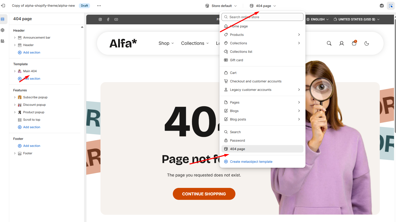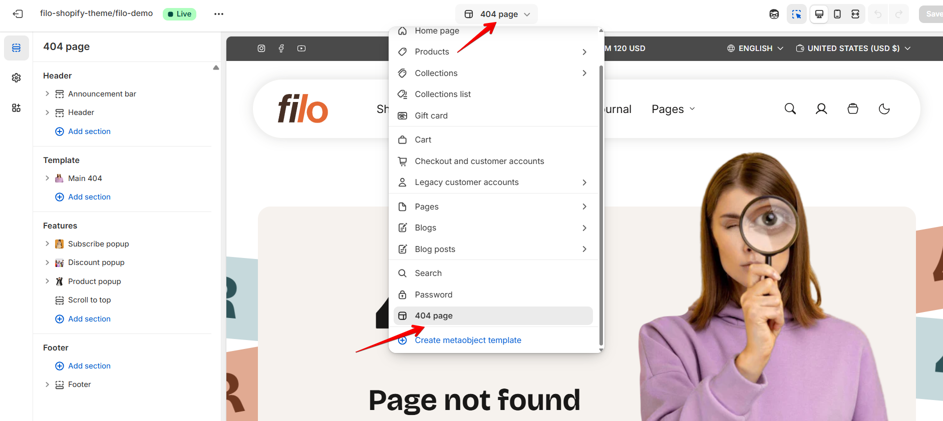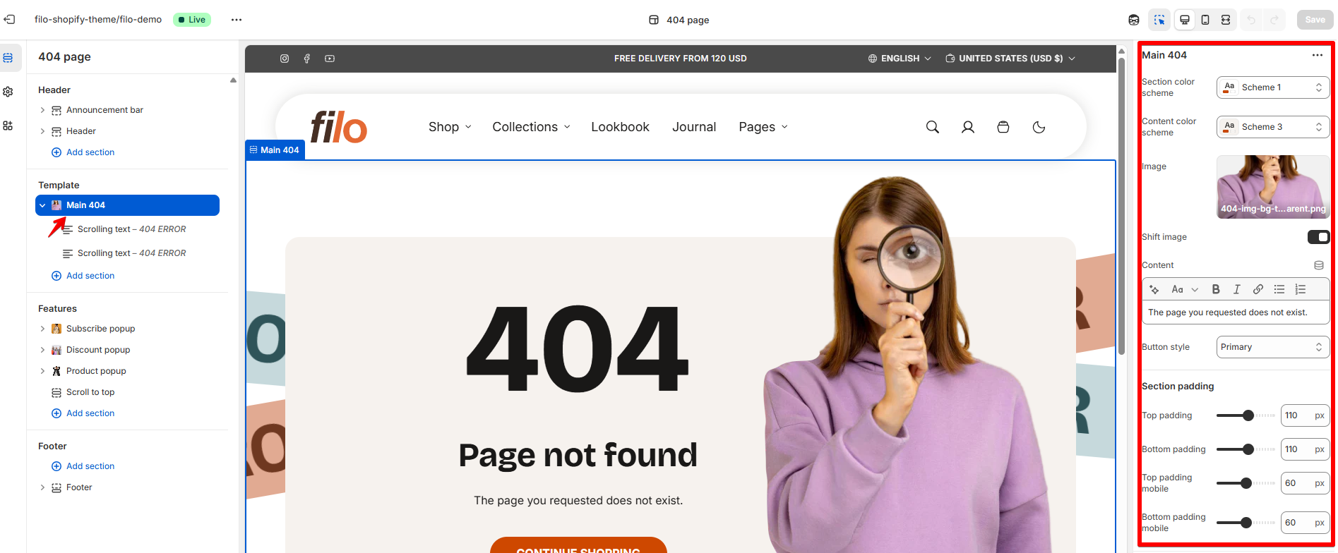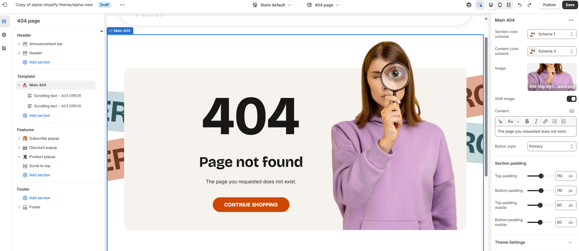 To begin customizing, navigate to the 404-page settings in your theme editor.