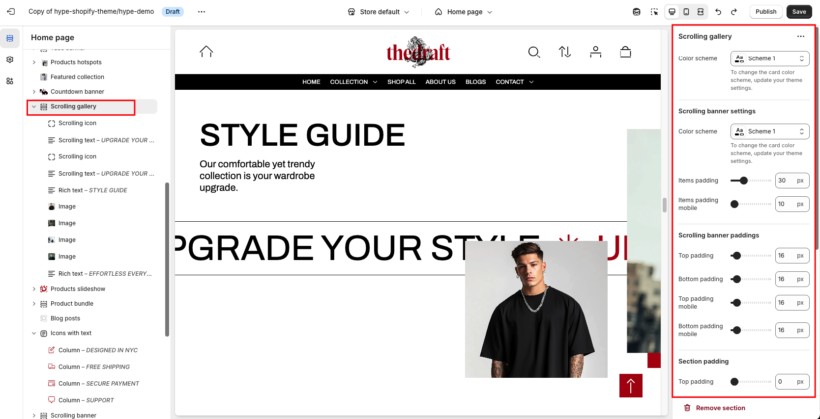 The 'Bottom padding' setting functions similarly to the 'Section top padding' setting but controls the space at the bottom of the section.