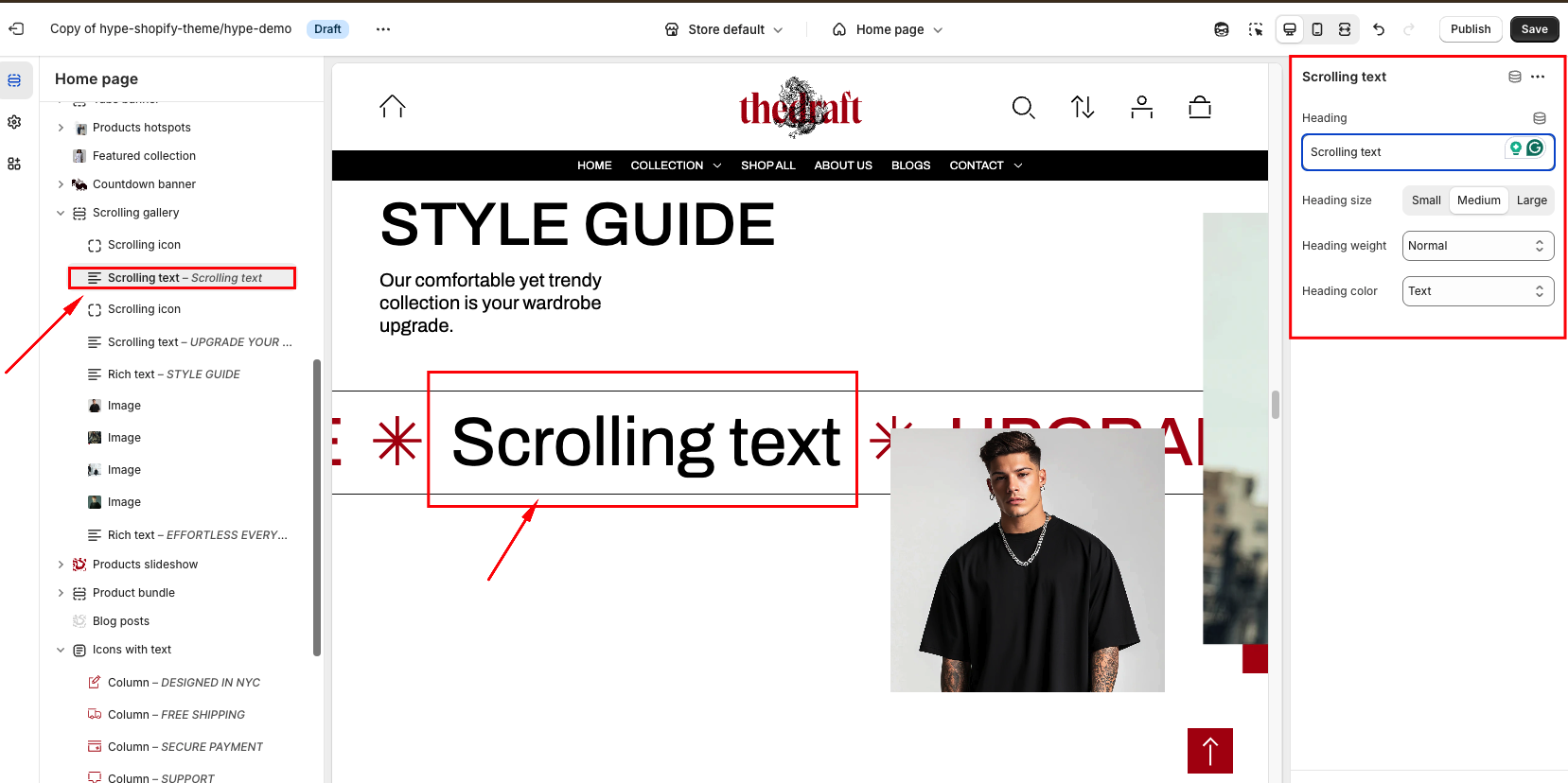 | Heading | To add text to the section, simply enter the text in the provided field. In the top menu of the field, you can find options to customize the text, such as making it bold or italic or adding a hyperlink. |