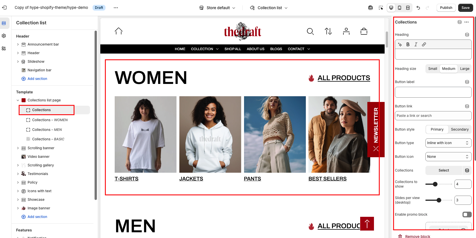 | Slides per view (desktop) | This option allows you to set the number of collection cards displayed in a single row without scrolling. |
