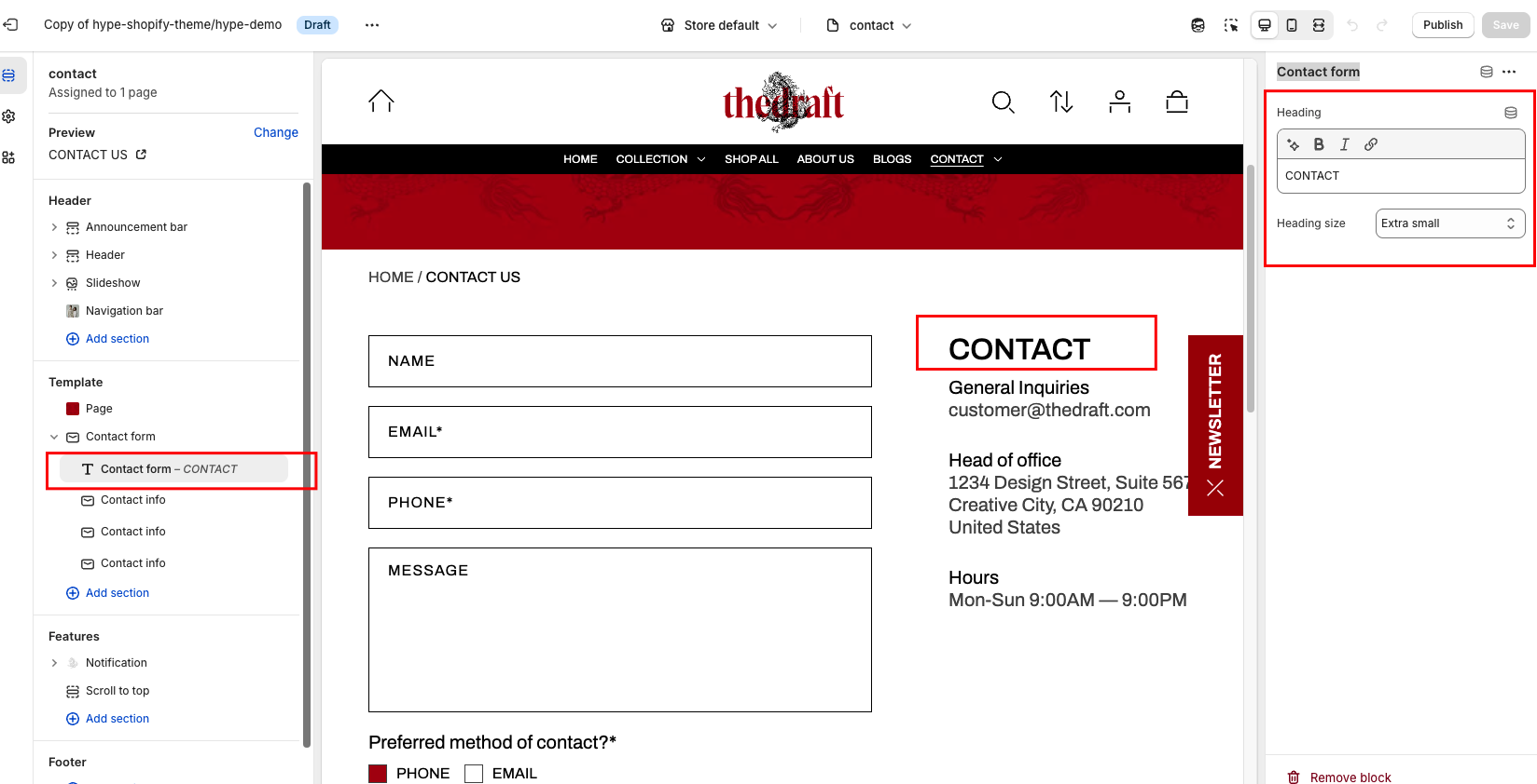 | Heading size | The heading size setting offers three options to control the size of your section heading: