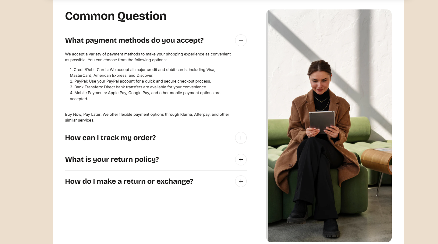 This section is ideal for displaying FAQs or other expandable content.