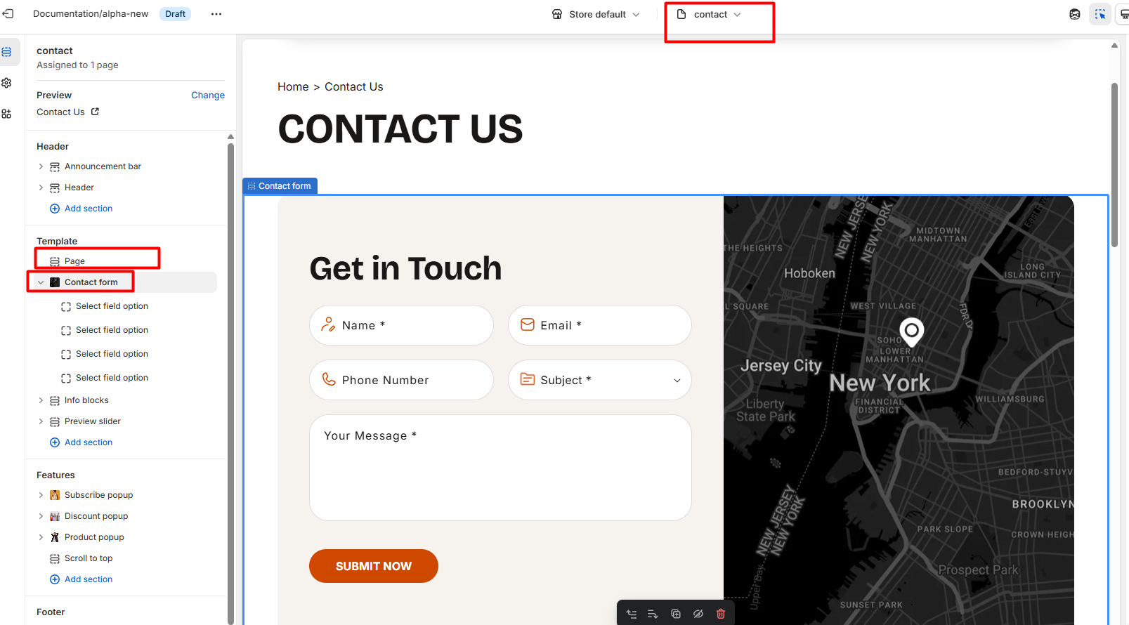 How to configure the Contact form section
