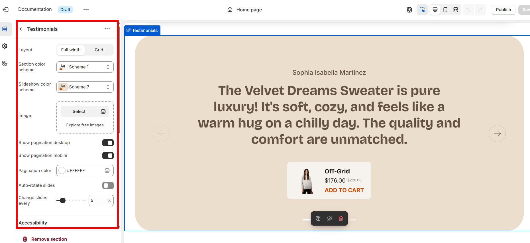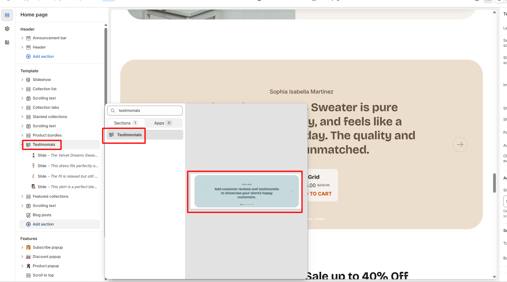 How to configure the Testimonials section