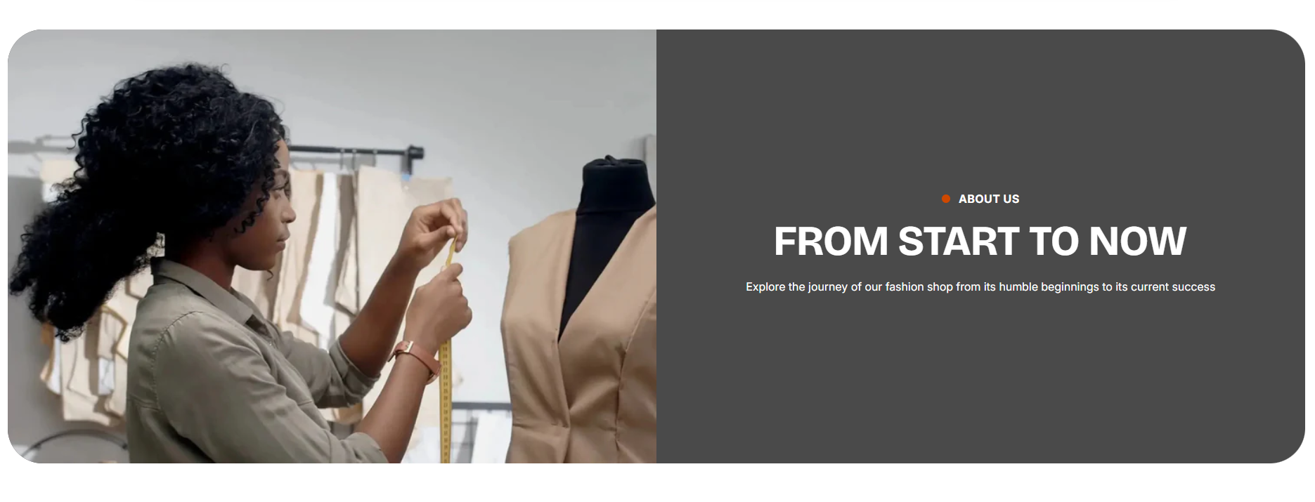 The Image with text section displayed on the about us page, used as a banner section.