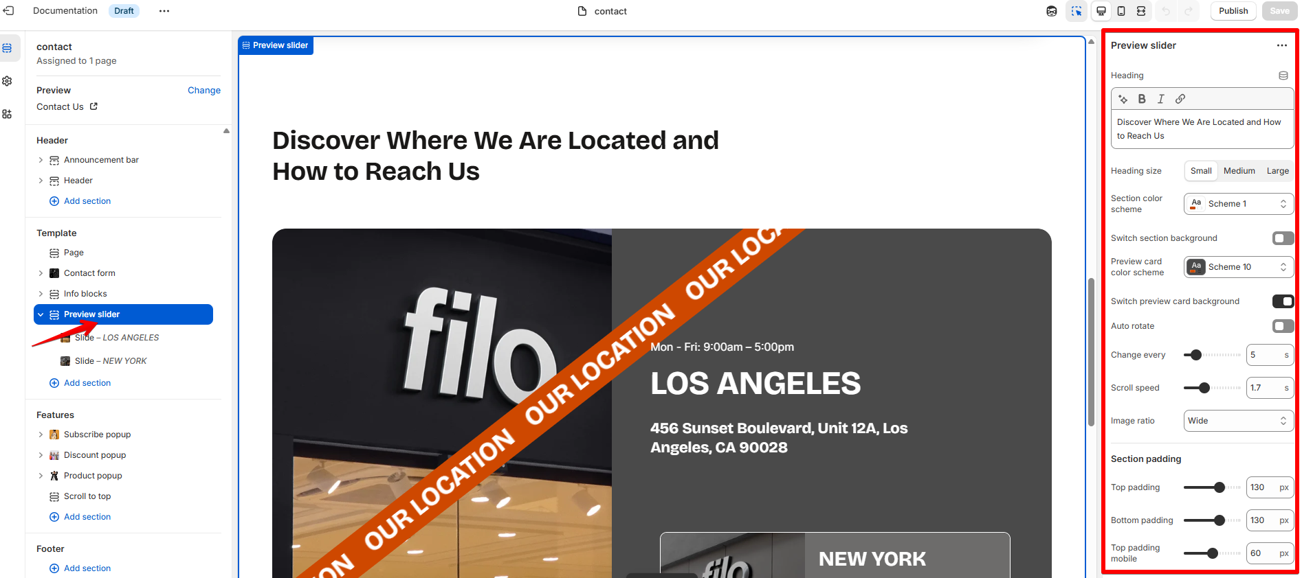 How to configure the Preview slider section
