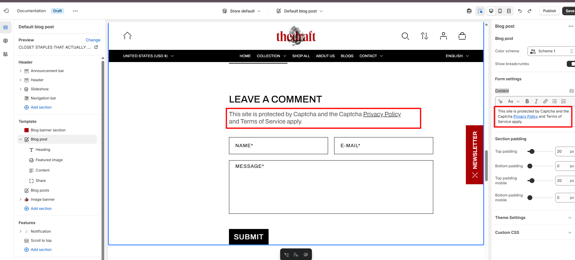 | Content | Add text that will appear below the comments form heading. This can be a short note, message, or instructions for visitors before they leave a comment, or a reminder about Captcha verification. |