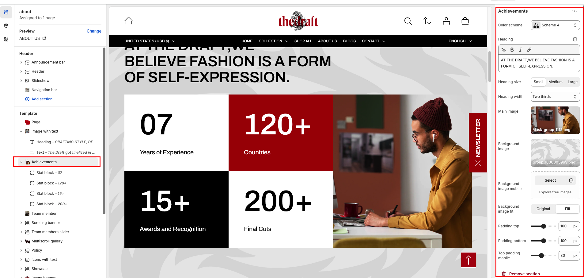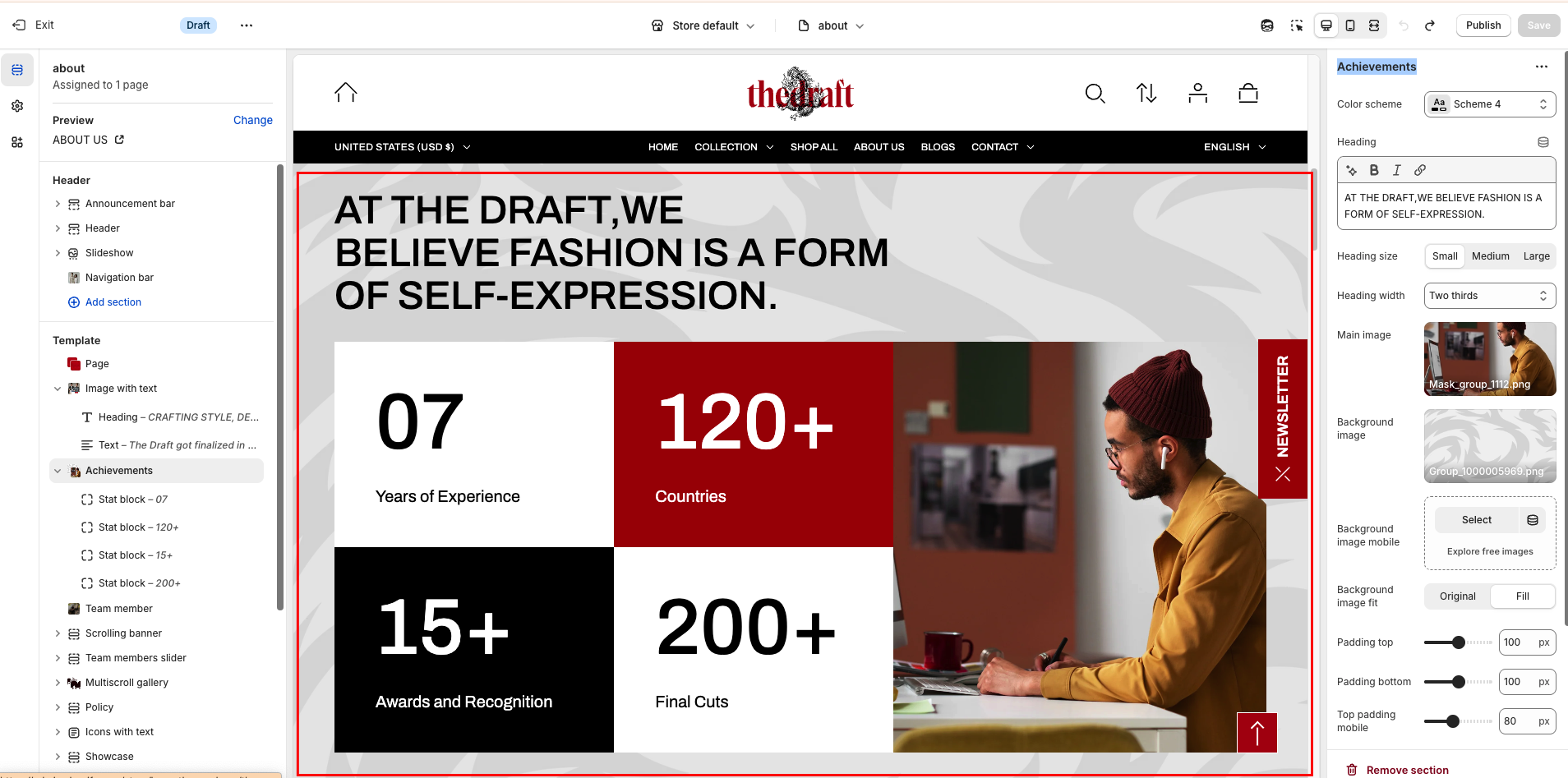 The Achievements section is designed to highlight key accomplishments and performance metrics of your online store. It provides a clear and accessible way to present statistics, milestones, or other important information that helps demonstrate the success and growth of your business.