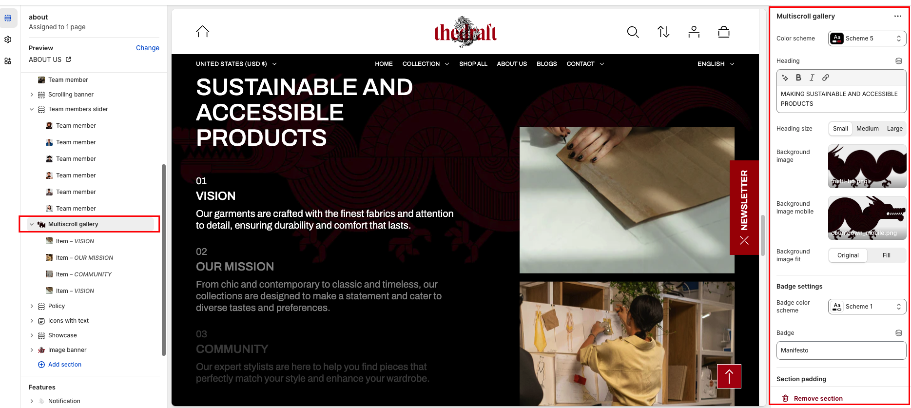 How to configure the Multiscroll Gallery section