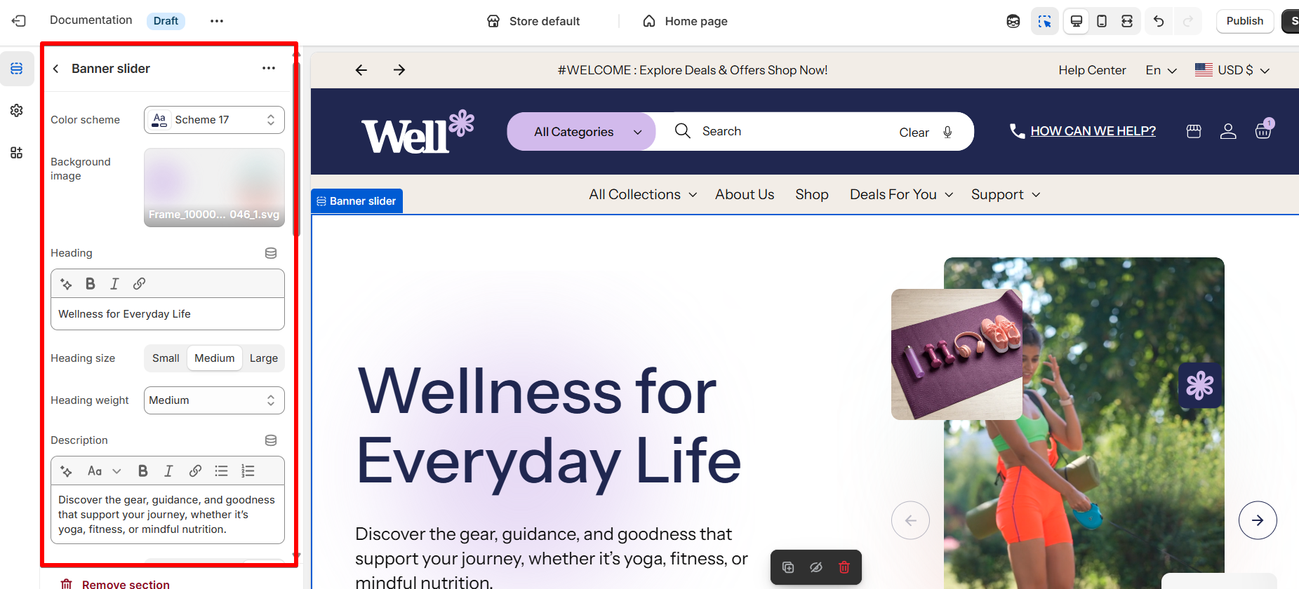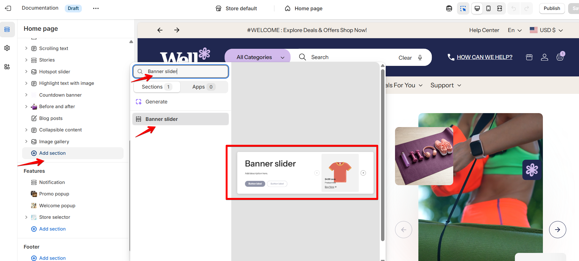 How to configure the Banner slider section