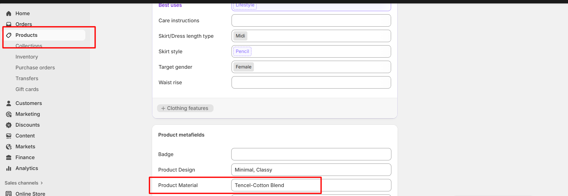 - Fill in the information in metafield and click “Save” to keep all your changes.