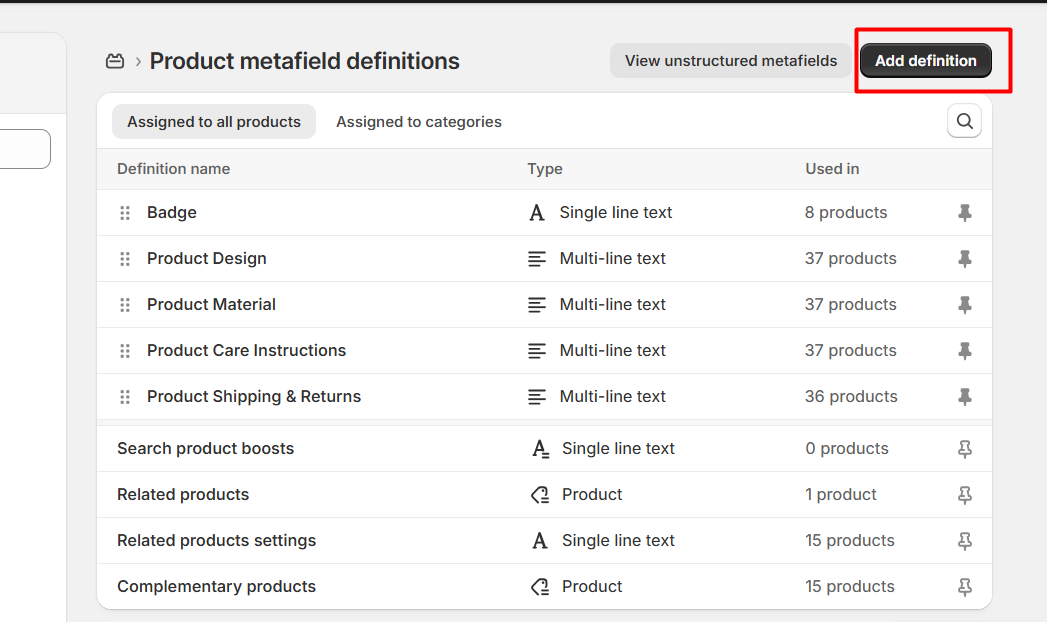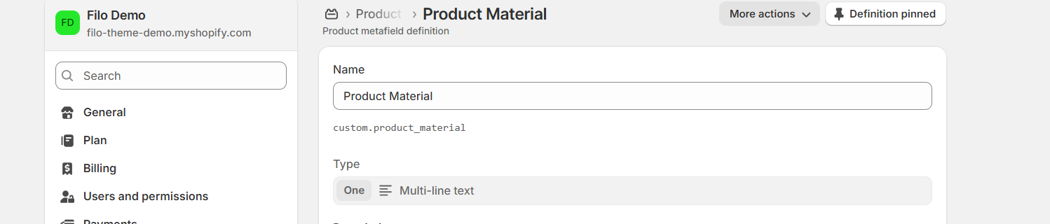 | Row title | Add a label for metafield.
