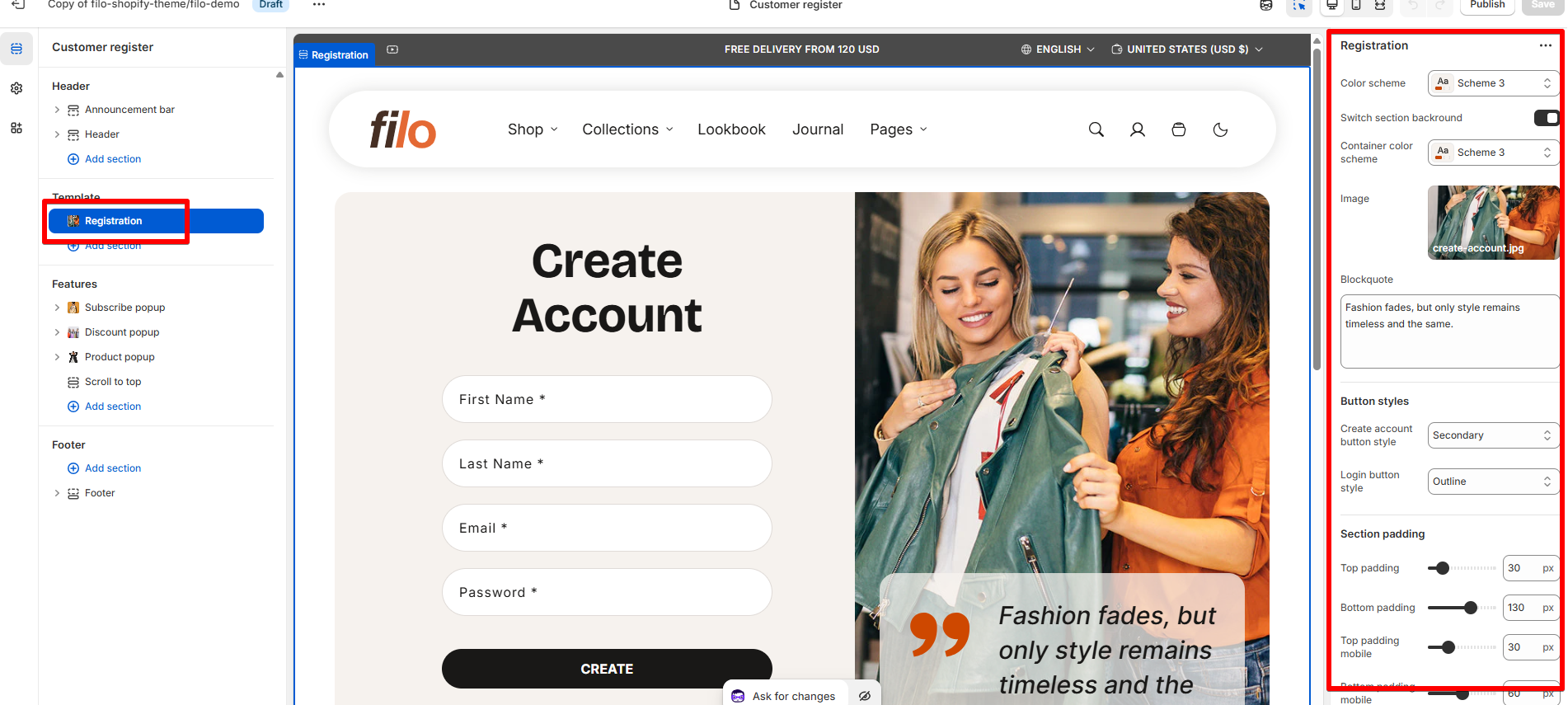 Choose the “Create Account” button’s appearance: