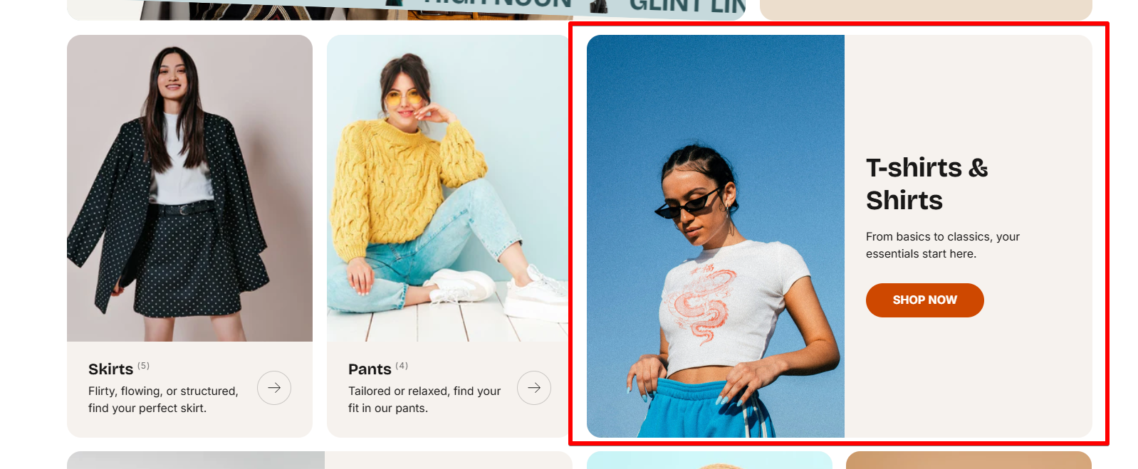 | Link label | Add text for the button (e.g., “Shop Now”) that links to the collection page. |