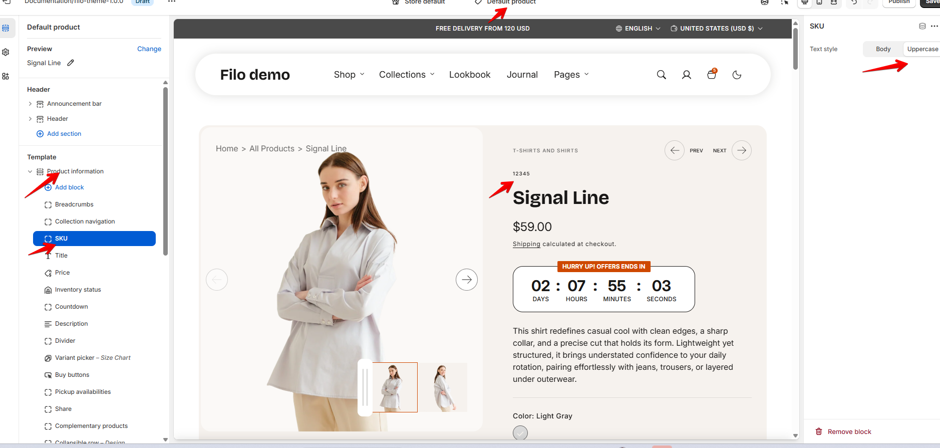 - Customize the text style of the SKU code according to your preferences.