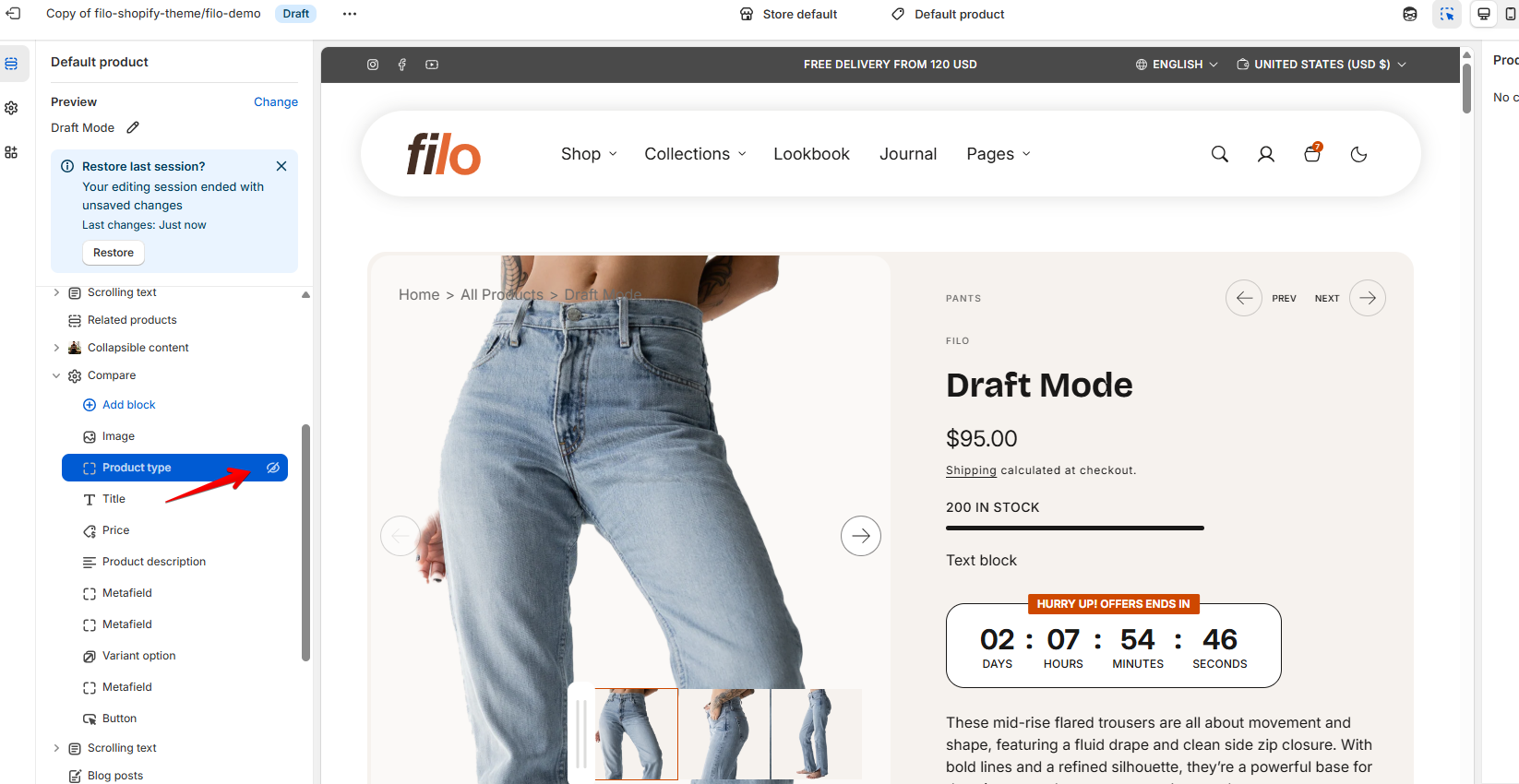 Product type should be entered on the product page to be visible when this block is added in the customizer.