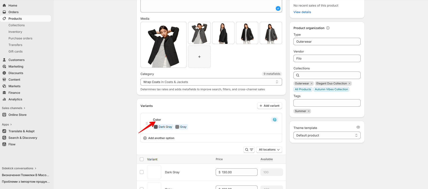 Path: Shopify Dashboard/Products/Products detail page/Variants section/Add variant