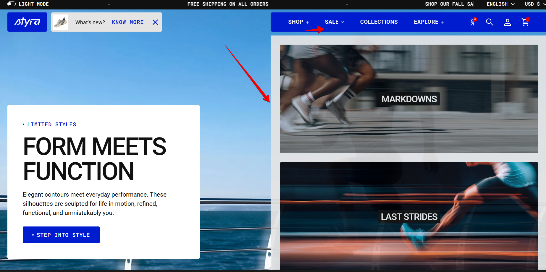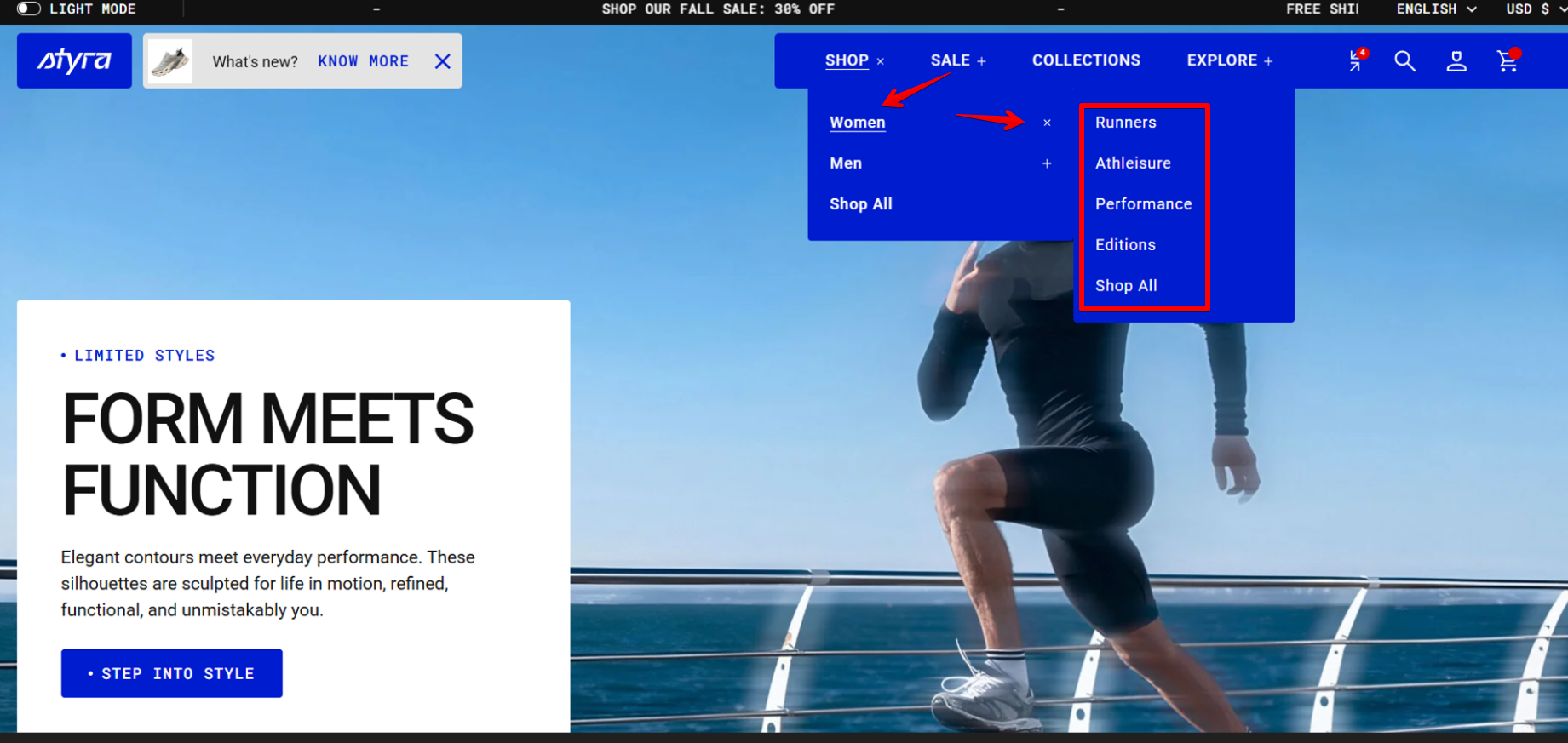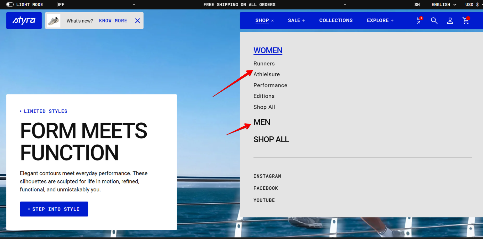 When you hover over each category, such as Men or Women, the menu expands to show the related collections.