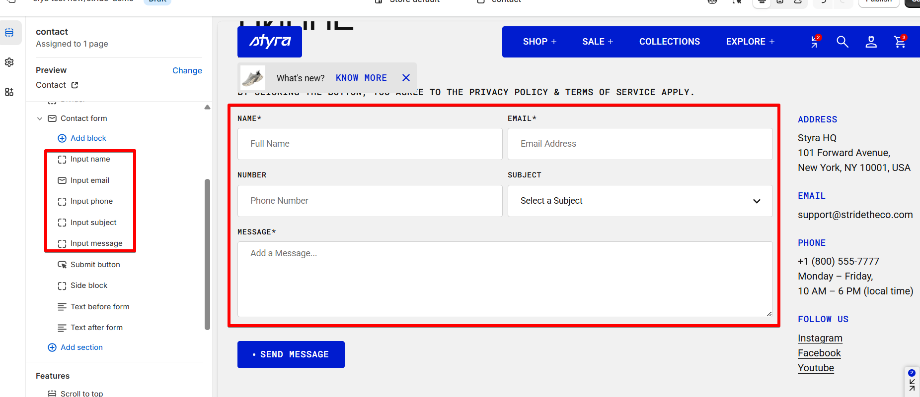 Inputs (name, email, phone, subject, message)