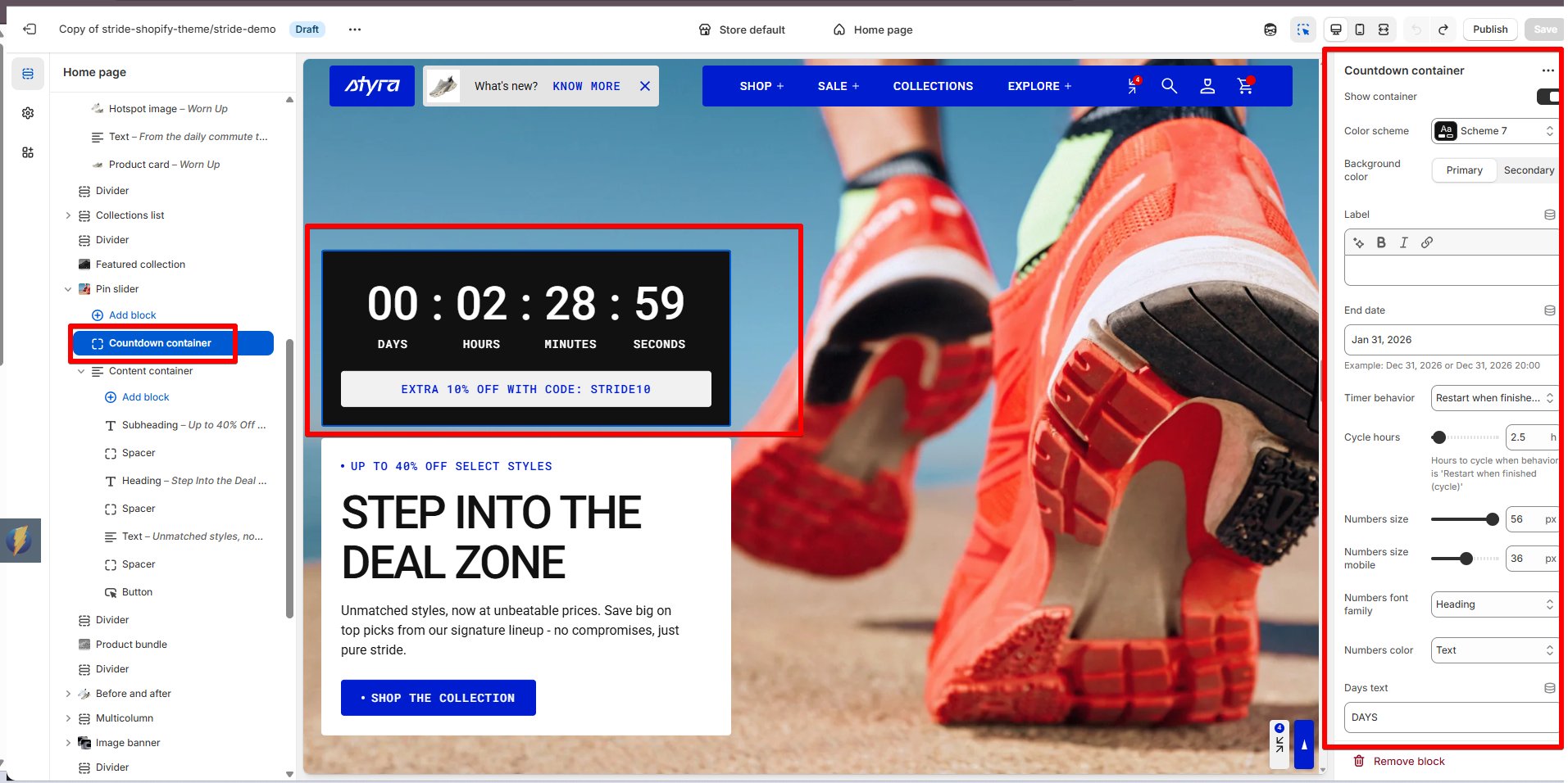 | End date | Enter the end date for a specific promotion. Refer to the example provided below, the field in the theme customizer to ensure the discount period's end date is correctly formatted. |