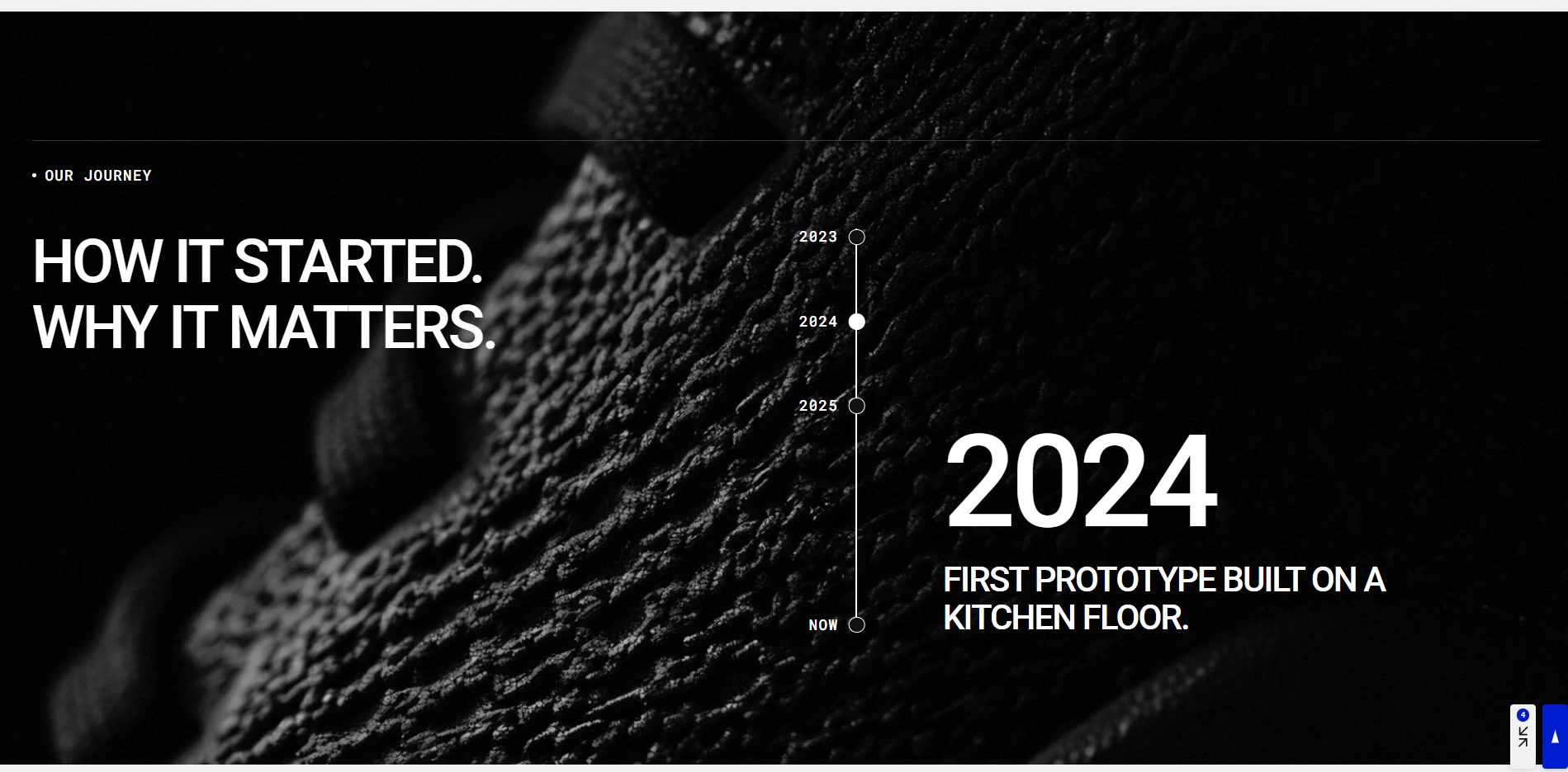 - Second Column: Includes a Timeline Group block that visually displays the company’s milestones.