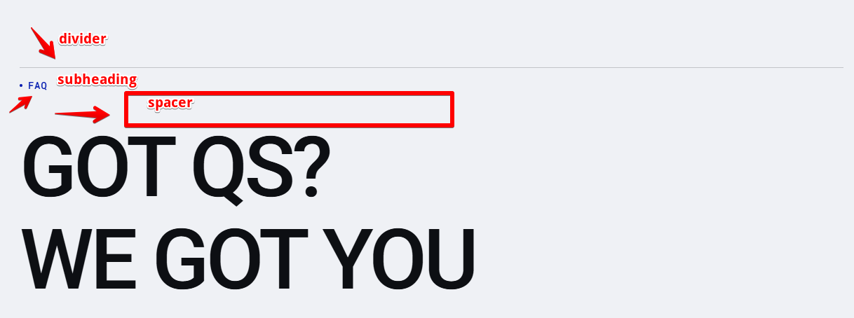 Content Blocks Sections: In most layouts, the sections typically begin with a divider line, a subheading, and a spacer. These elements are added before other blocks to create visual separation, hierarchy, and proper spacing across the layout.