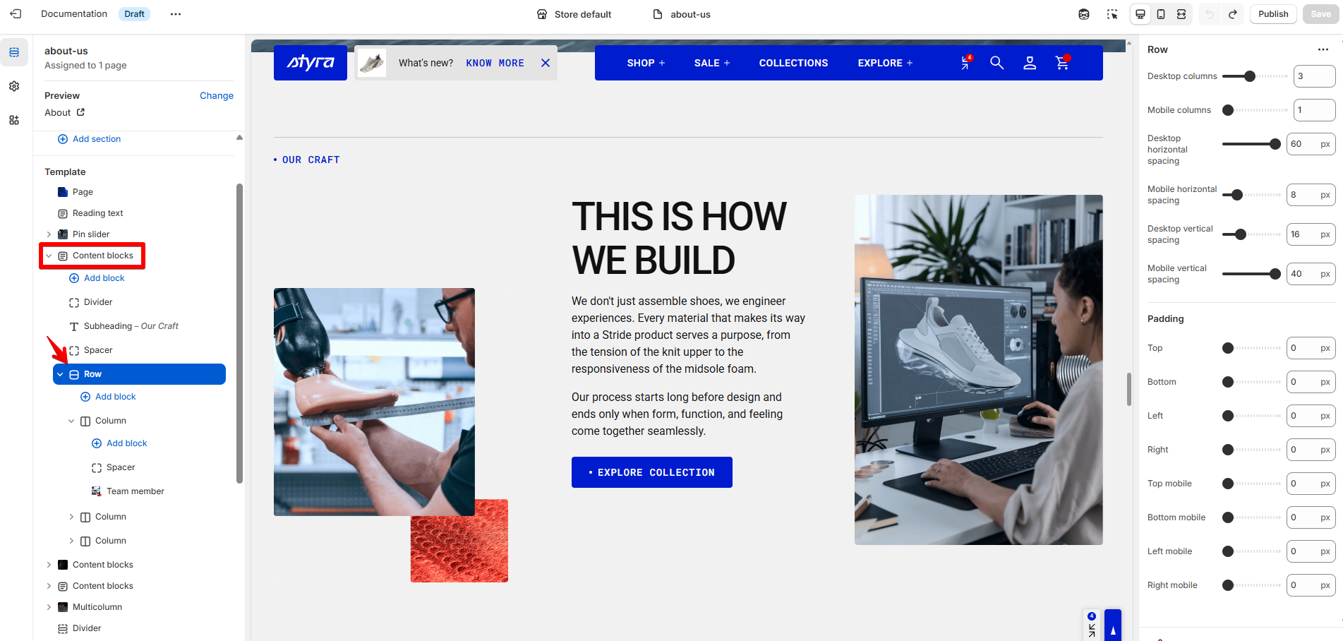 | Desktop horizontal spacing | Set the horizontal space between columns within the same row on desktop. |