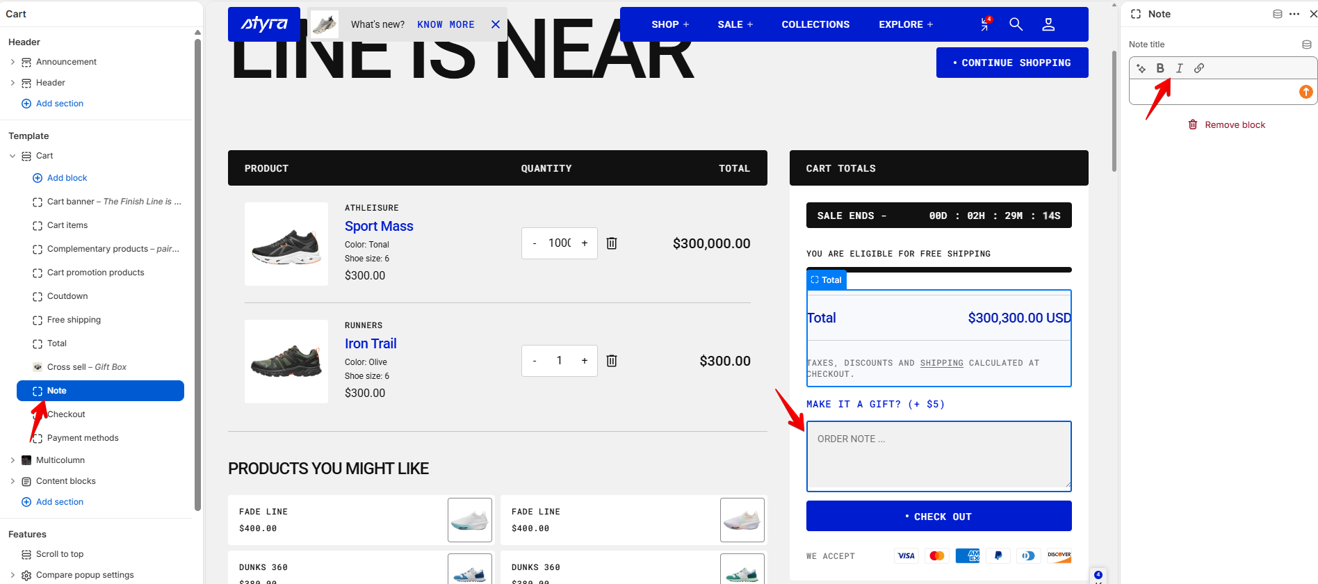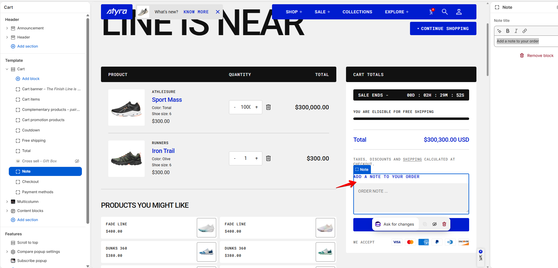| Note title | Label for the input field where users type their note (e.g., “Add a note to your order” |