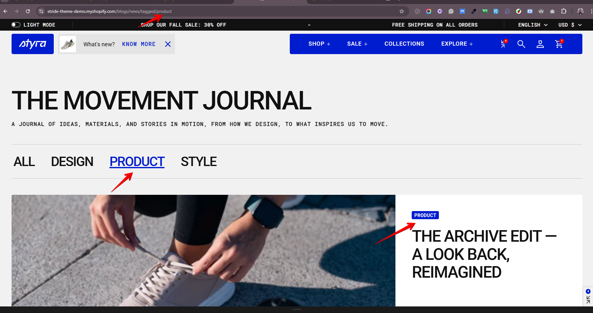 - the page URL will include the selected tag