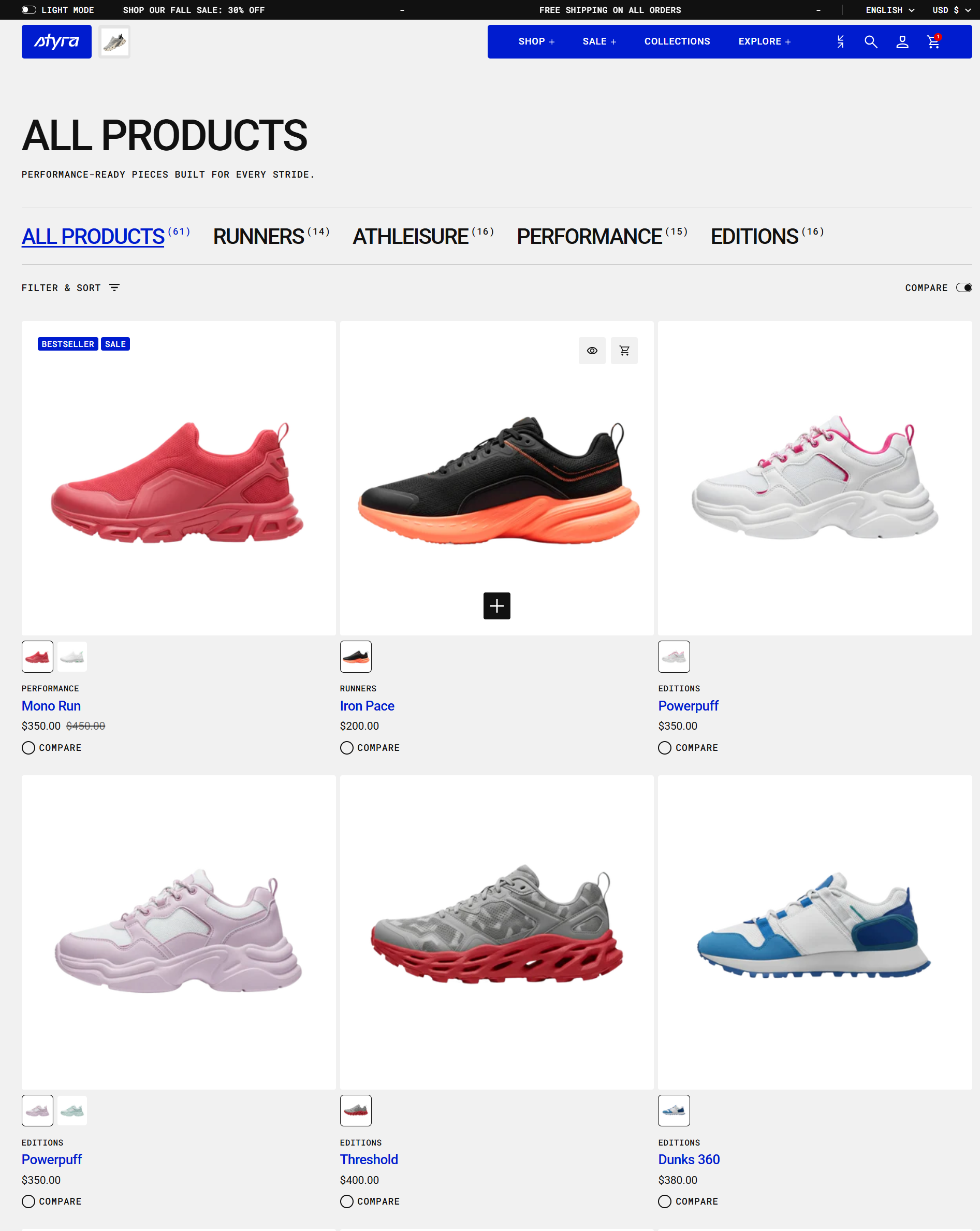| Enable sorting | Enable sorting with a ‘Sort By’ dropdown, available in either drawer or standard dropdown format. Clico on Sort to see drawer or dropdown with options. Sorting can be combined with filtering if enabled, or used independently. Options include: Best Selling, Featured, Alphabetical, Price, and Date. |