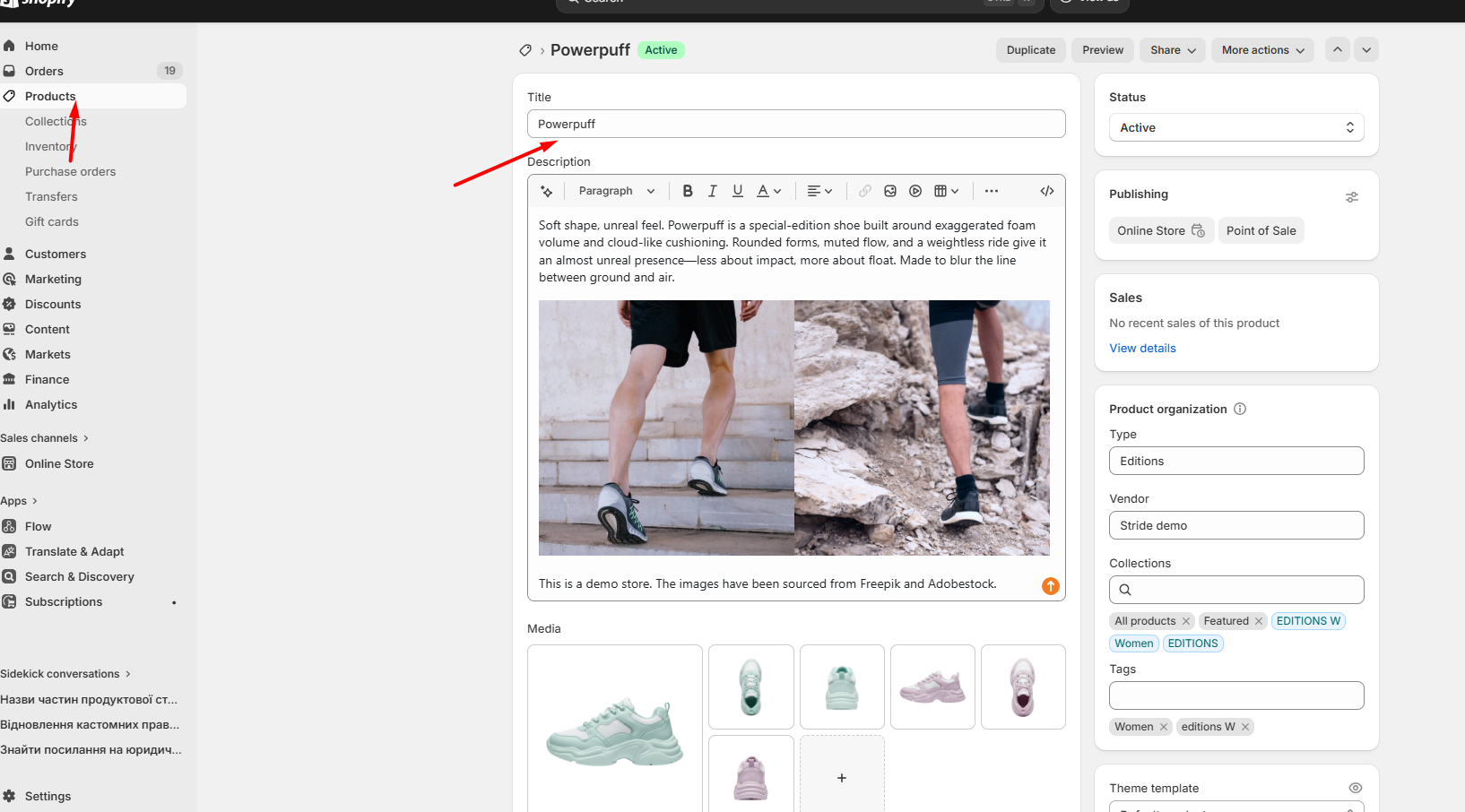 Product section consists of two parts: