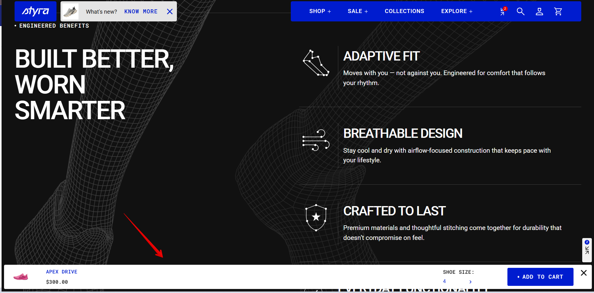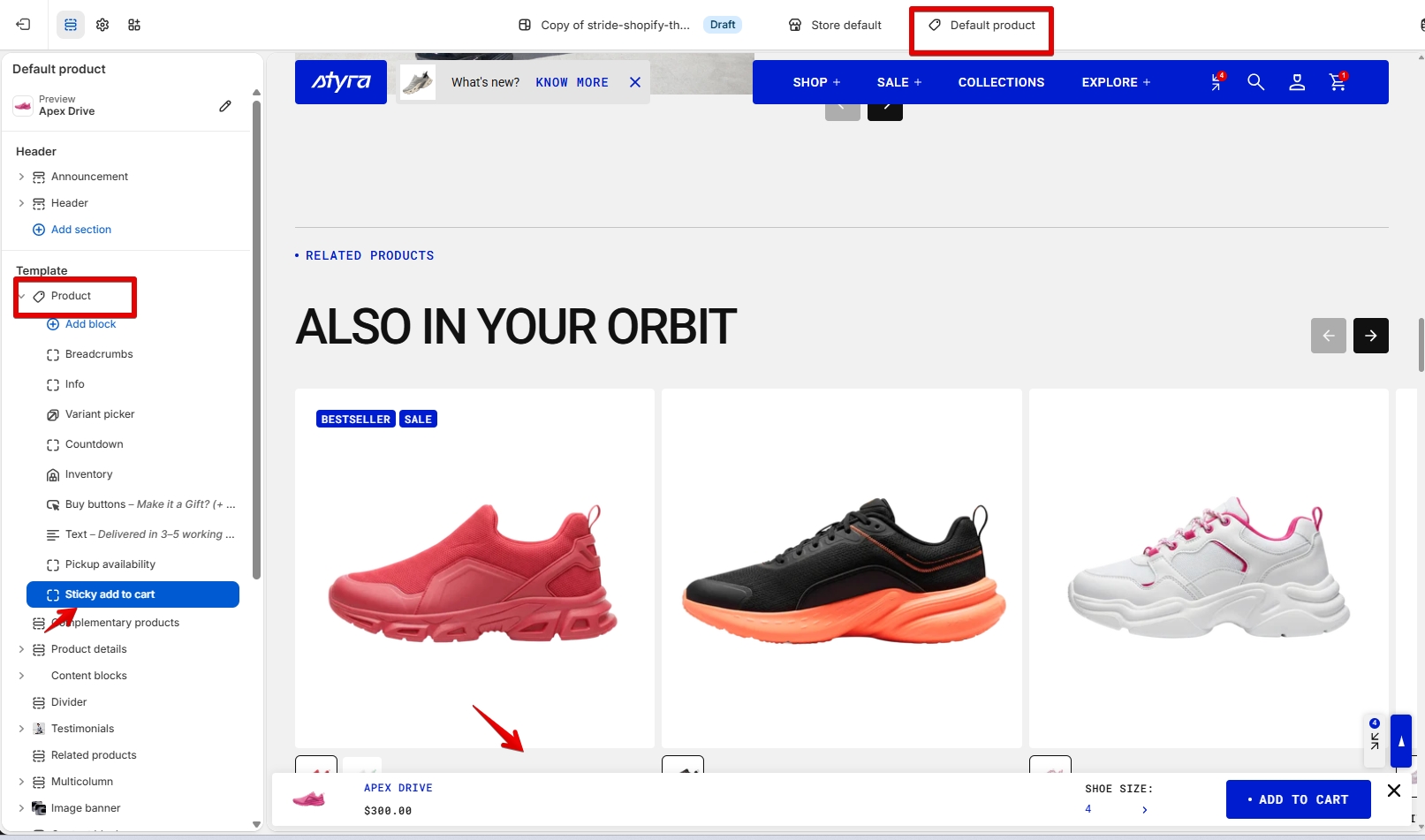 All variant options created on the product page will be visible in the sticky “Add to Cart” section.