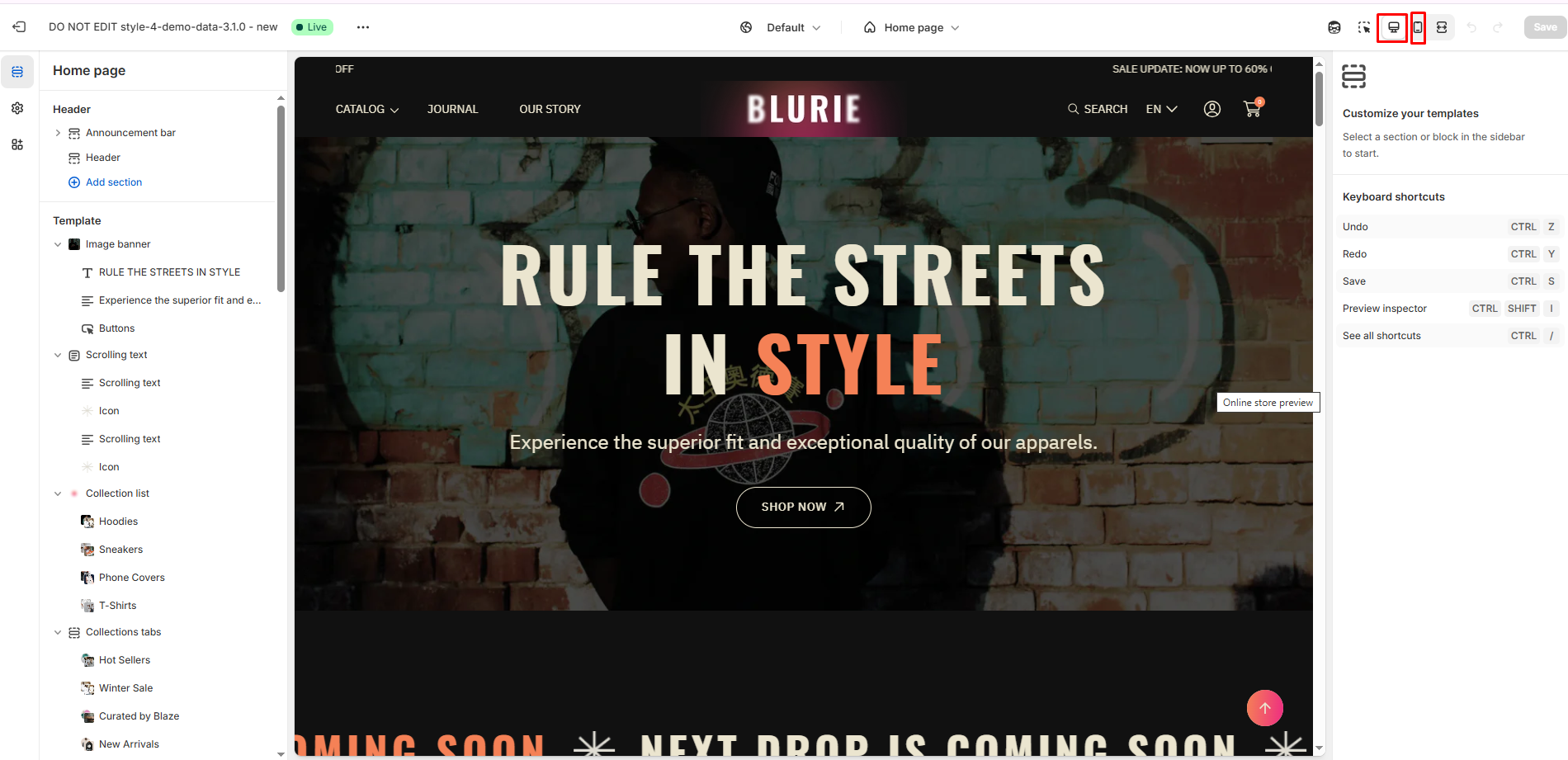 You can see changes that you make instantly in the customizer or preview mode. Plus, you can switch between desktop and mobile views by clicking on the icons.