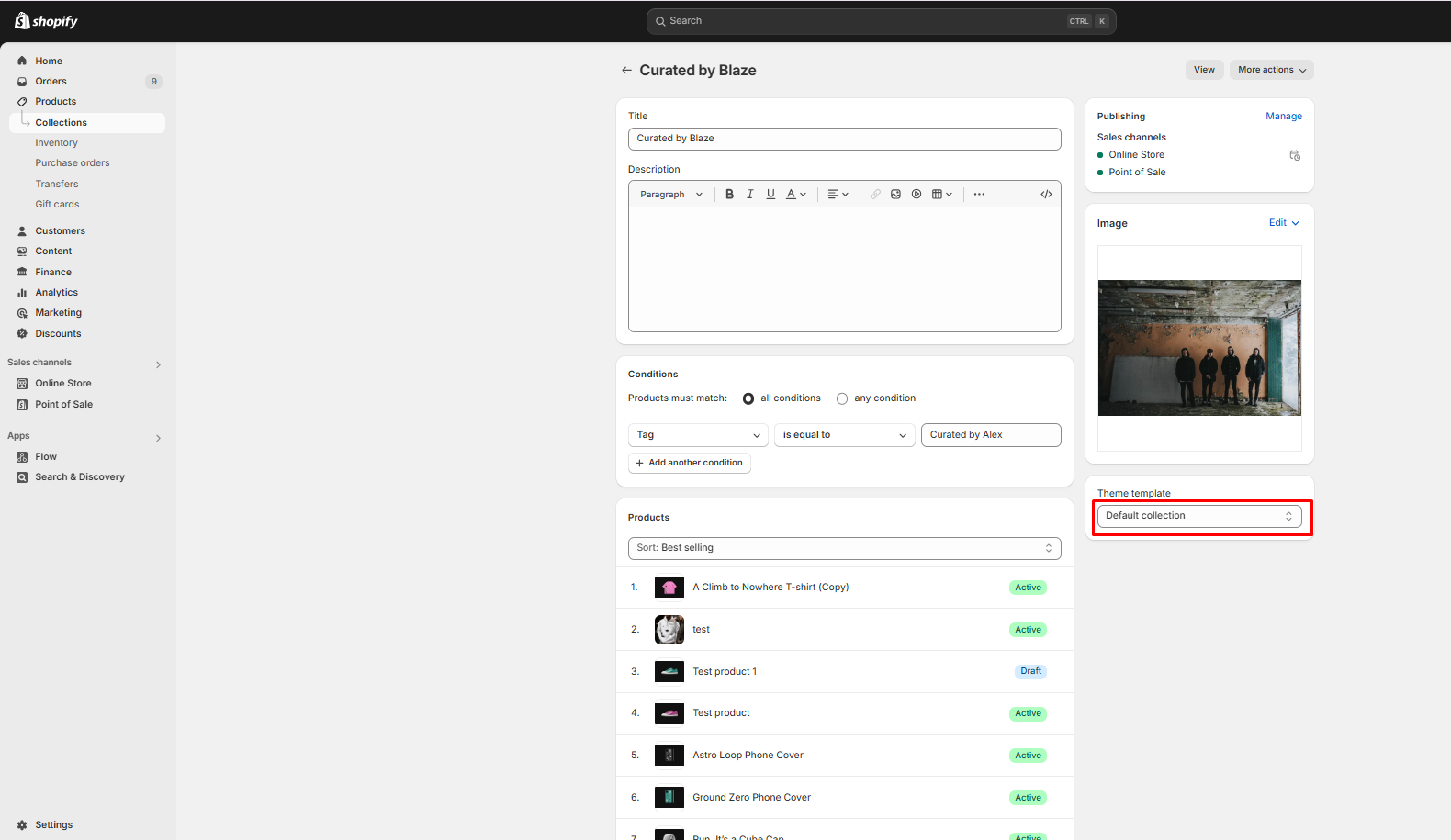 - In the Theme template section, click the drop-down menu and then select the template that you want to apply to your collection.
